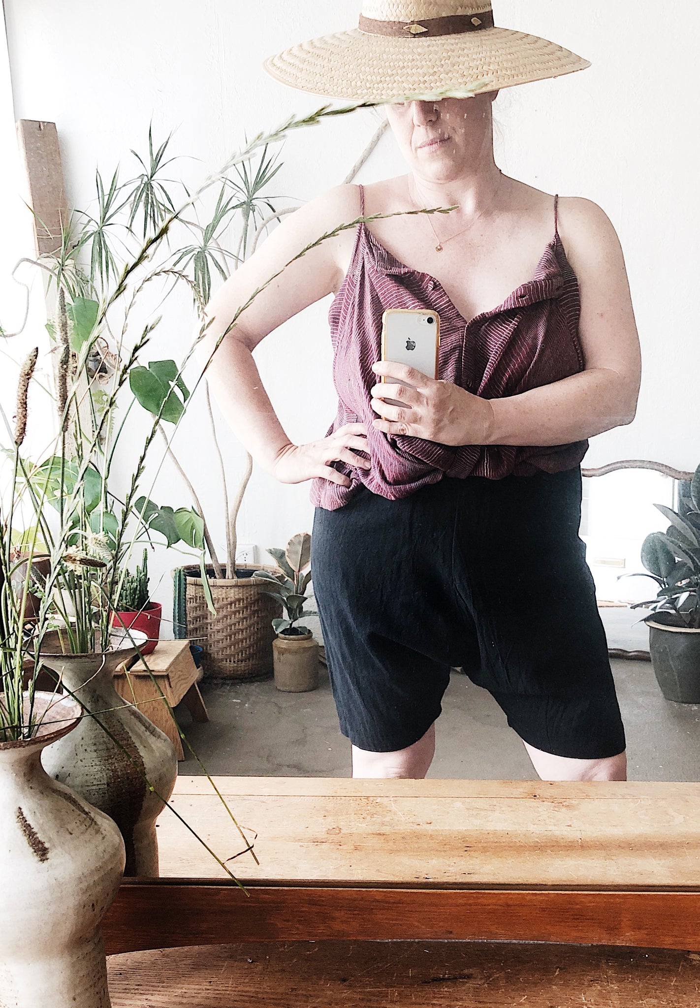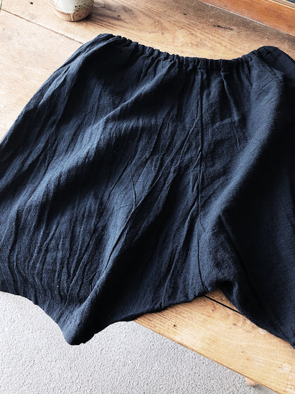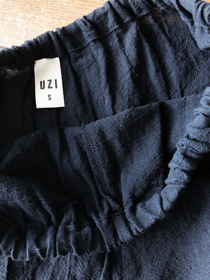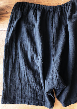 UZI handmade and hand dyed in Brooklyn NY. Coarse cotton drop crotch short in black. Slight wrinkle effect and loose fit. Elastic waist. Never worn