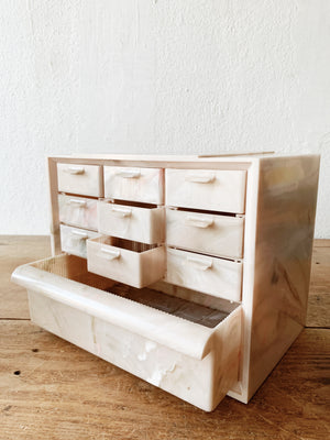 Fantastic pink marbleized caddy in excellent condition. Made of hard plastic, Akron, Ohio. From the mid century