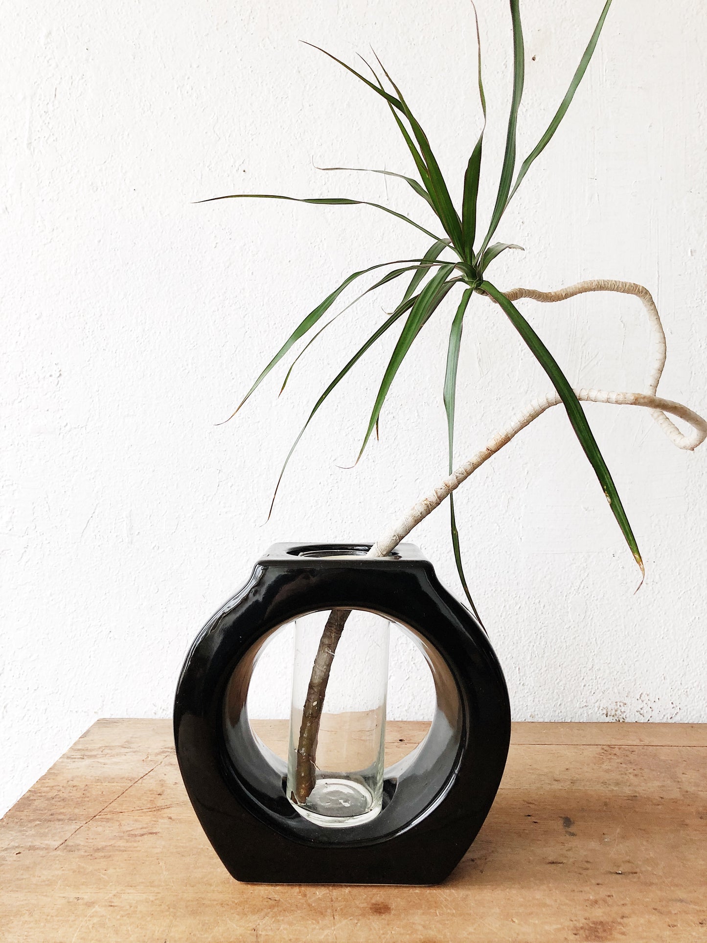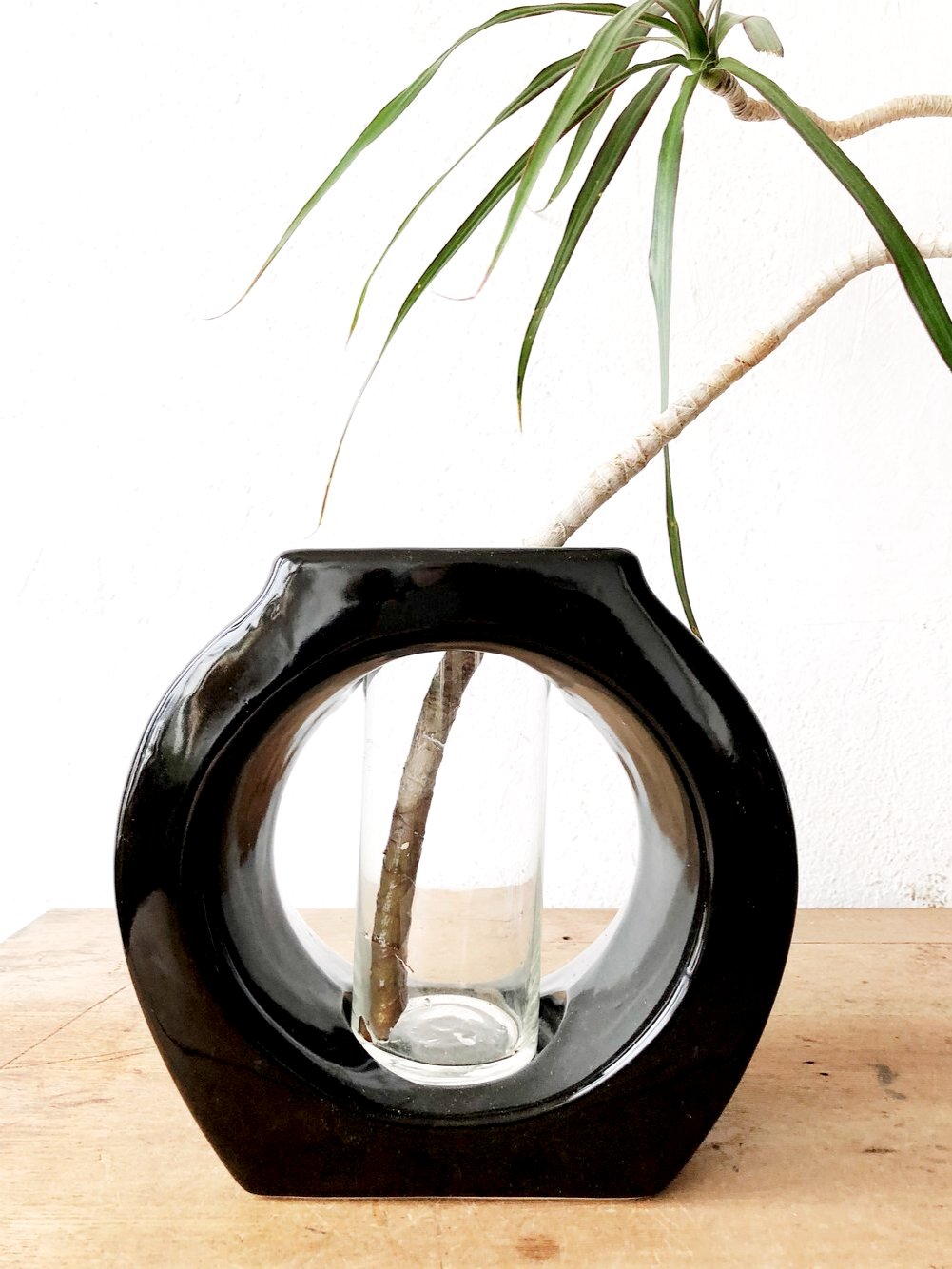 Black gloss ceramic holder with clear vase. Perfect for propagating and watching roots grow. Vase removes