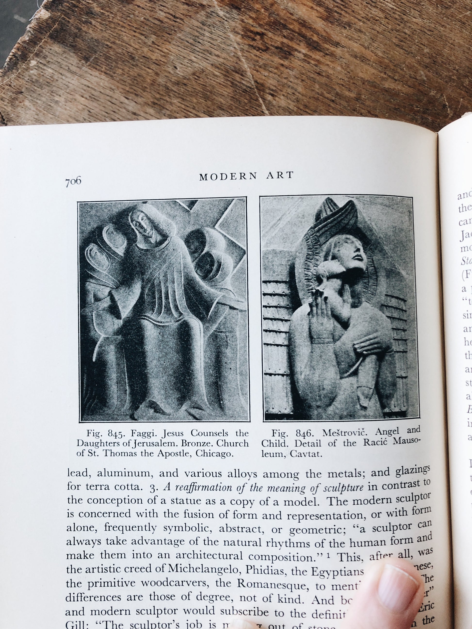 Old comprehensive art history book from the 1920s (this is the 1936 edition). Black and white illustrations and a few color plates too. Fantastic pressed cover