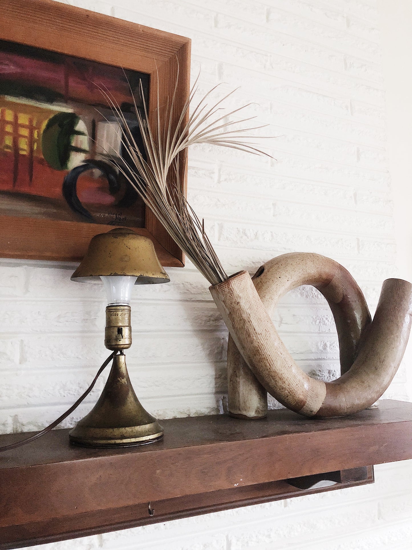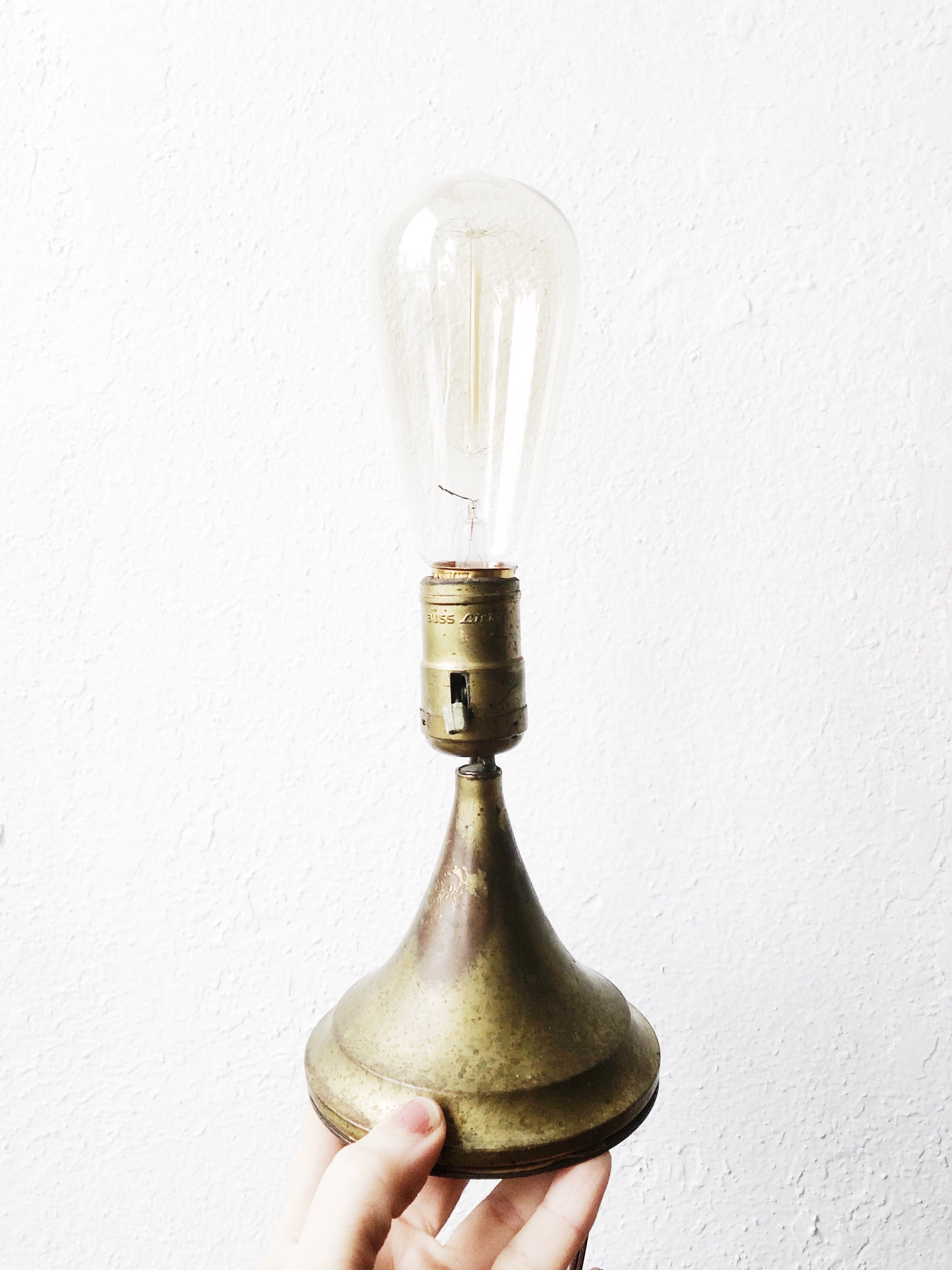 Awesome 1930’s machine age Bussman adjustable lamp. Use as a table lamp or sconce. Worn brass base with removable clip on shade. Rotating bracket in back to adjust orientation