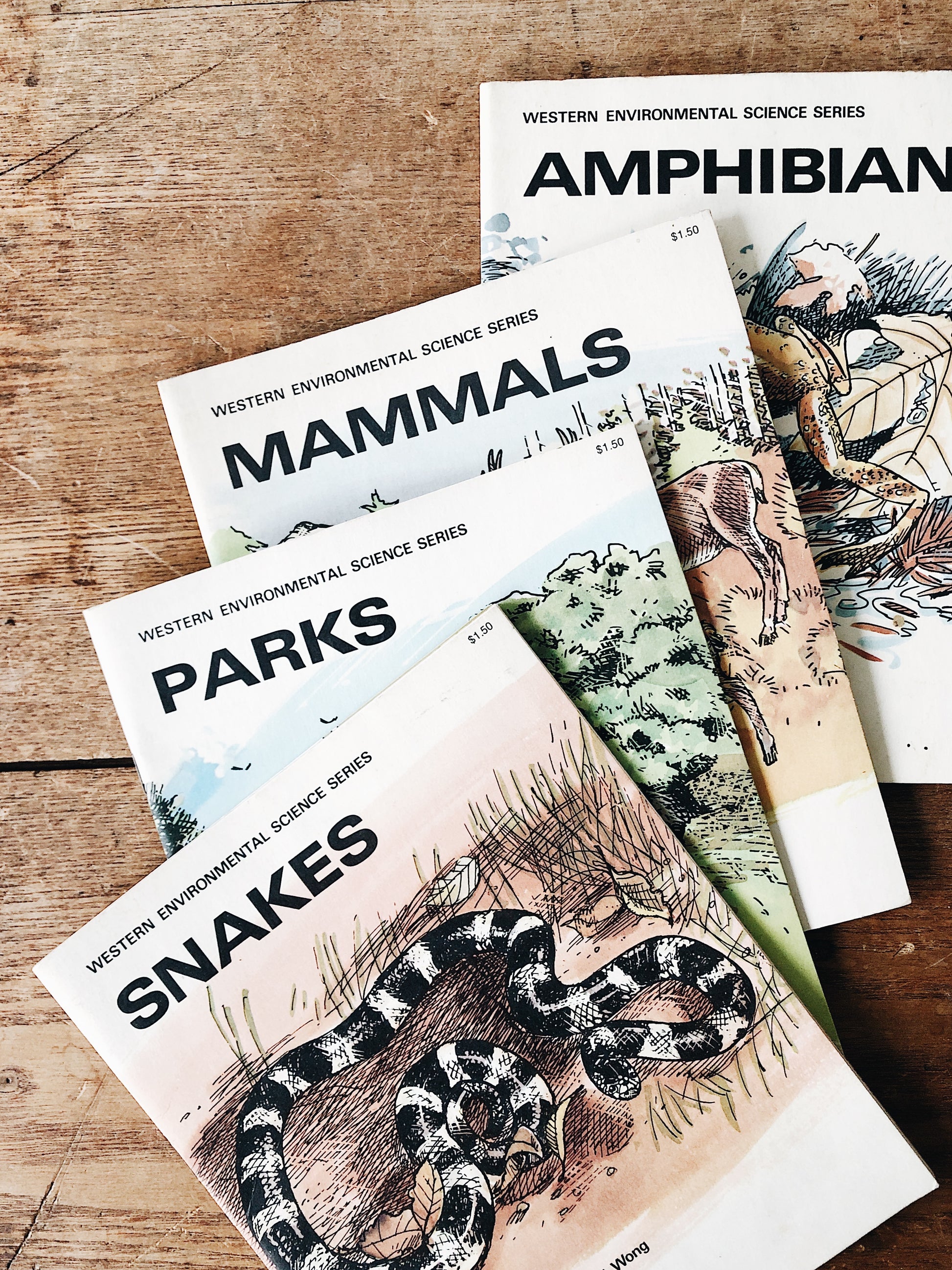 Sweet vintage four book set. Mammals, amphibians, snakes and parks. 1971 Western environmental series. Paperbacks with charming illustrations