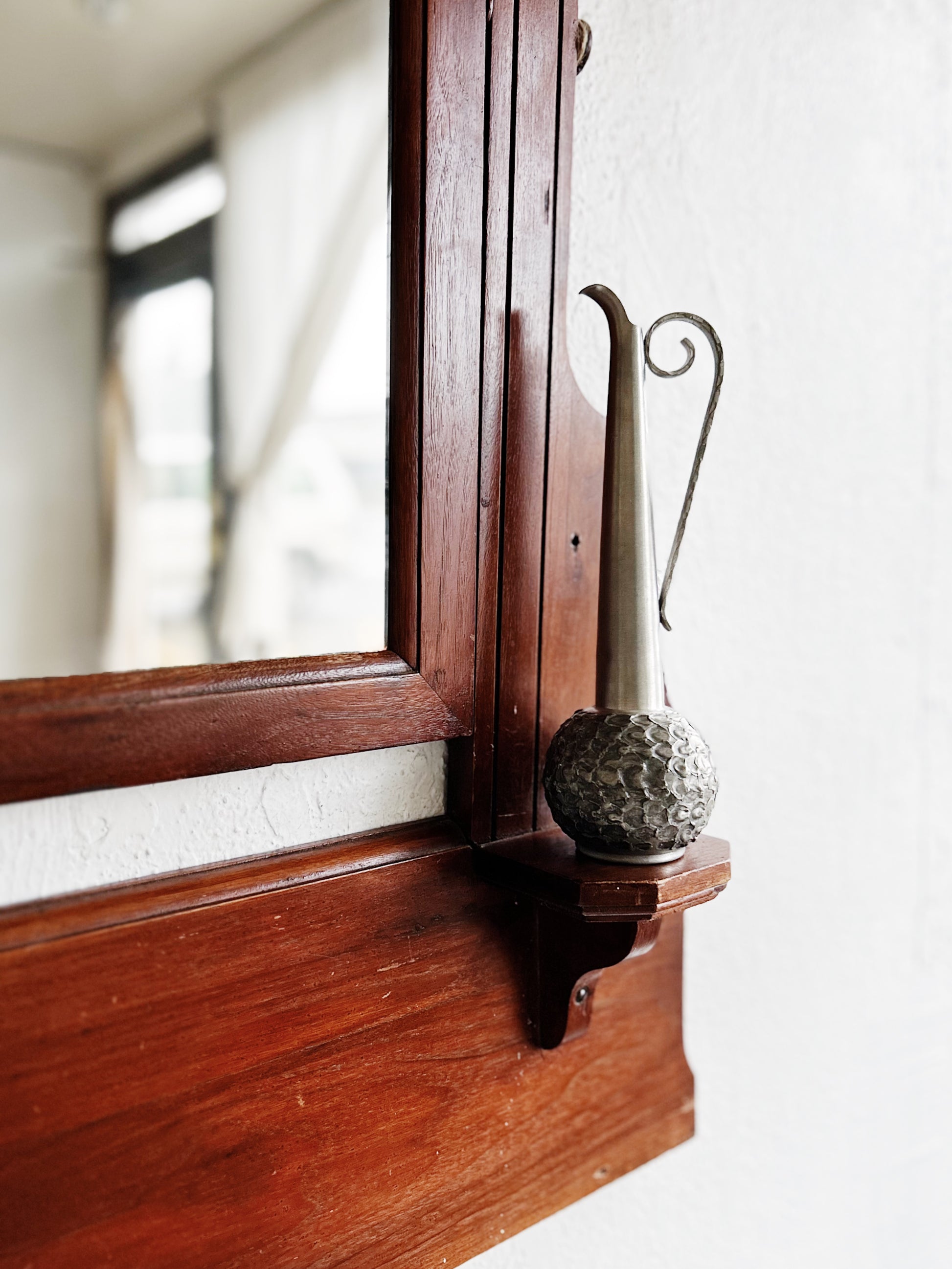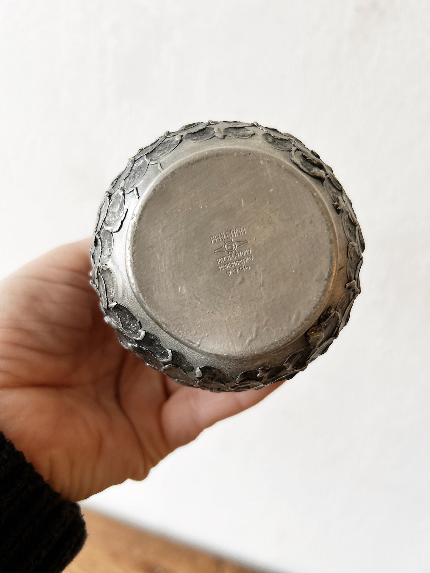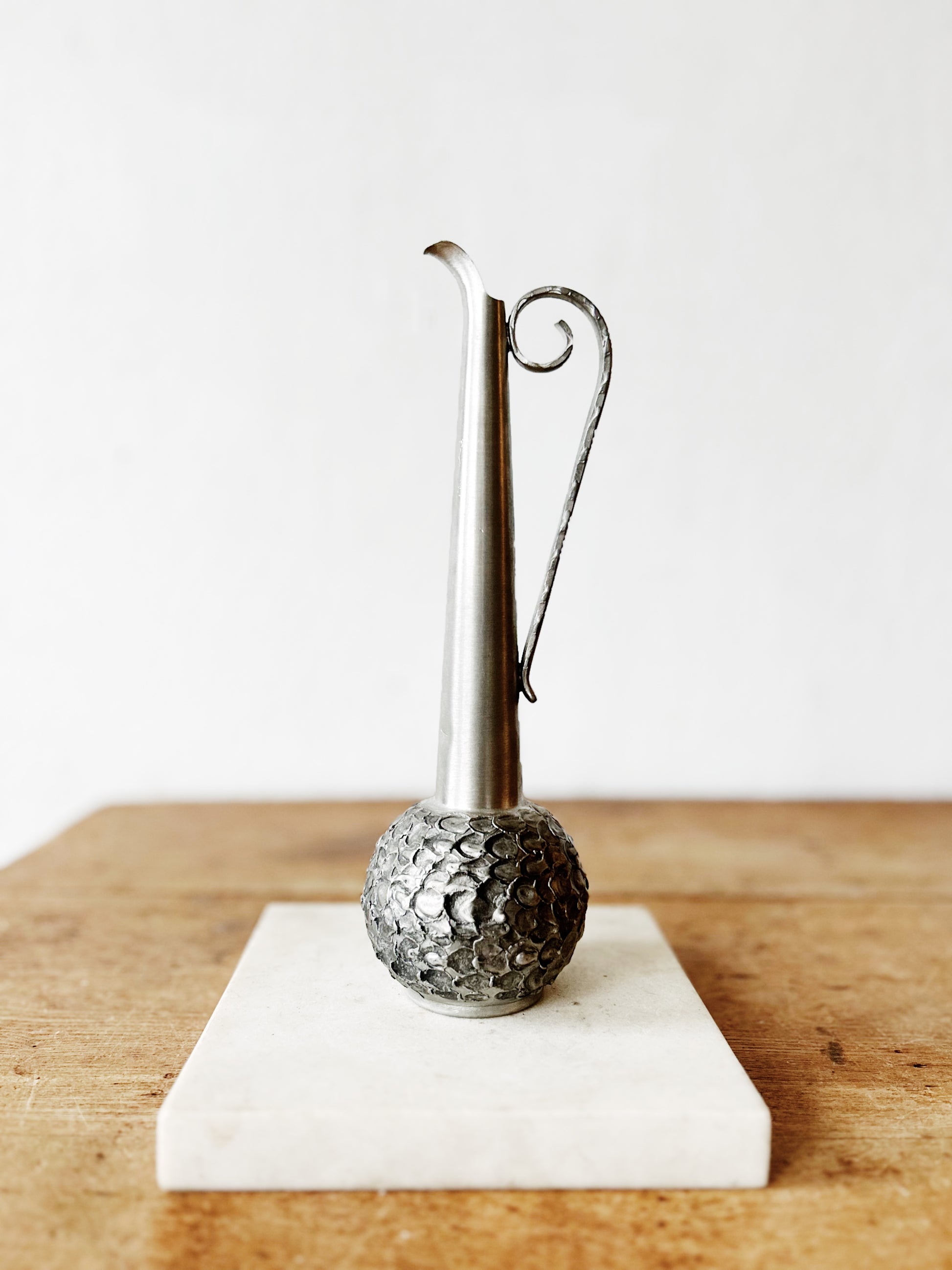Brutalist inspired pitcher in pewter, from mid century Norway. Lovely sculptural shape