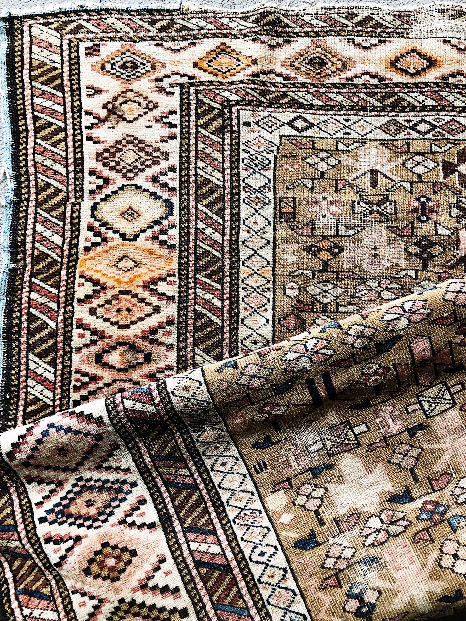 Some all over wear especially to the edges but no stains or significant holes. Pretty tatter is how we see it