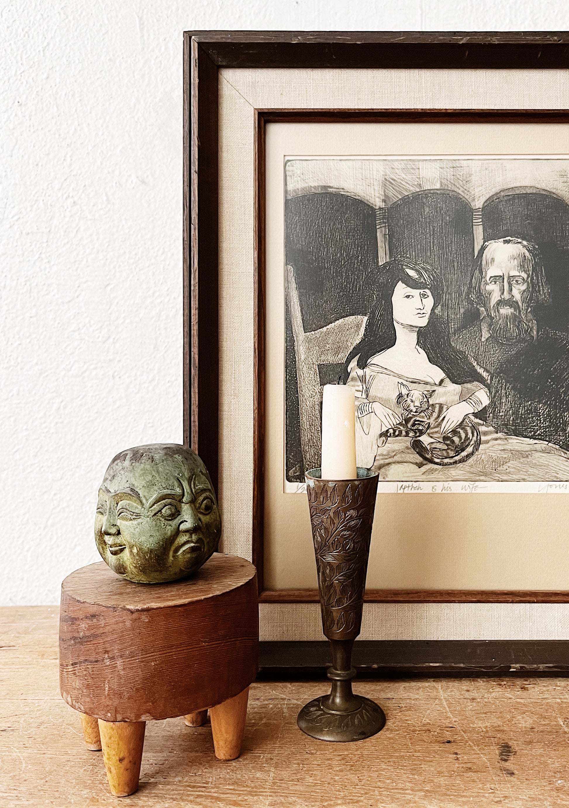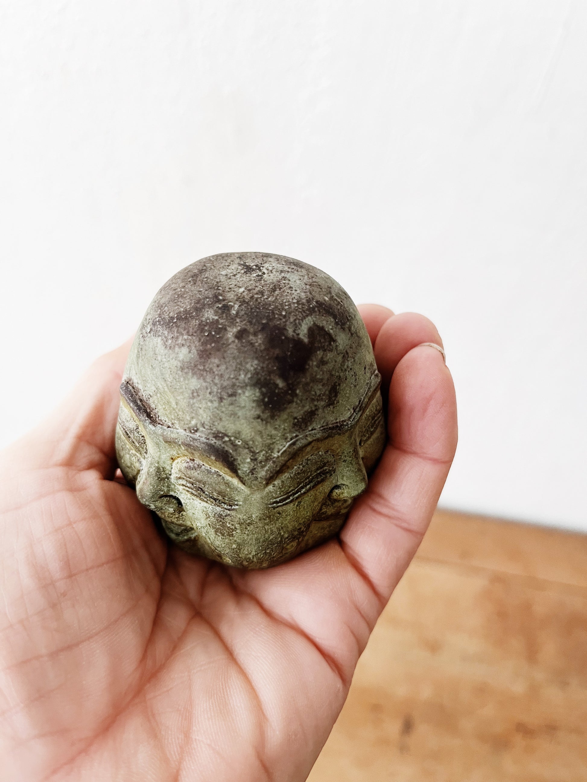 Vintage bronze four faces sculpture. The four faces represent serenity, joy, anger and sorrow- stages we all pass through in life. It also correlates with direction, north, south, east and west. Additionally the four faces represent health, career, love and wealth. Feels so good to hold…almost like a worry stone