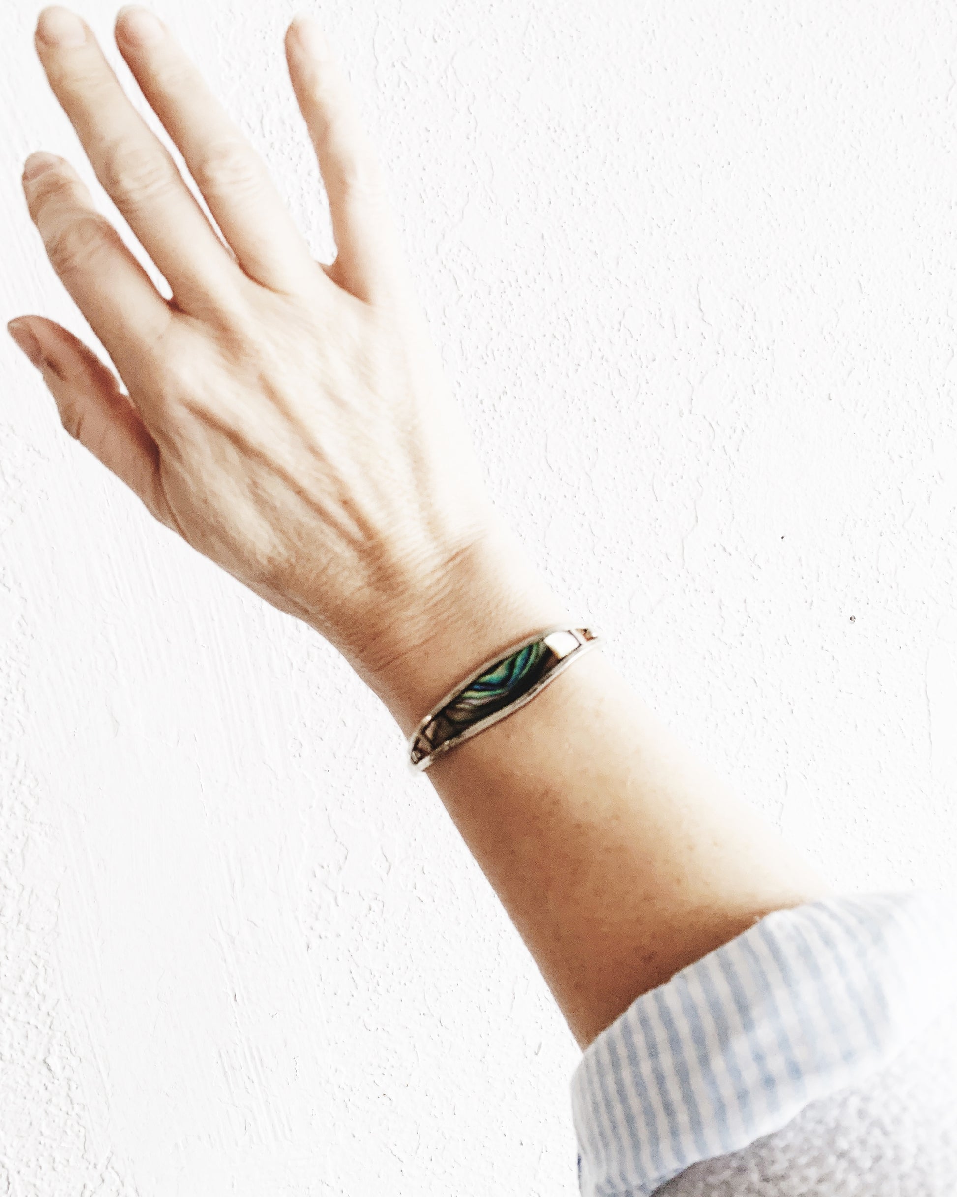 Vintage abalone inlay cuff , Mexican sterling, stamped. A stunner! Beautifully made.