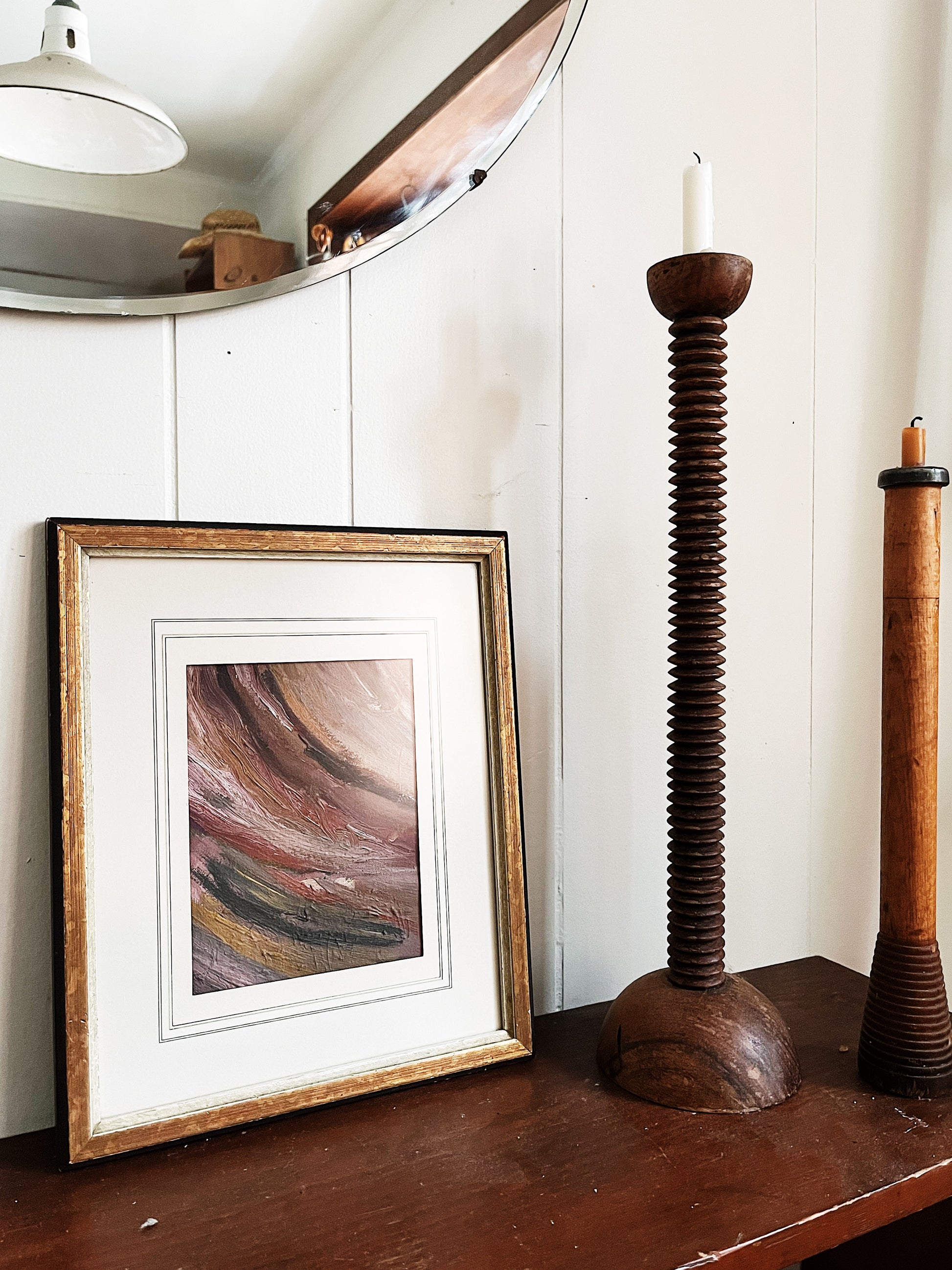 A real stunner. We found a small variety of vintage oil paintings from the same artist that we have matted and framed into a really lovely collection.