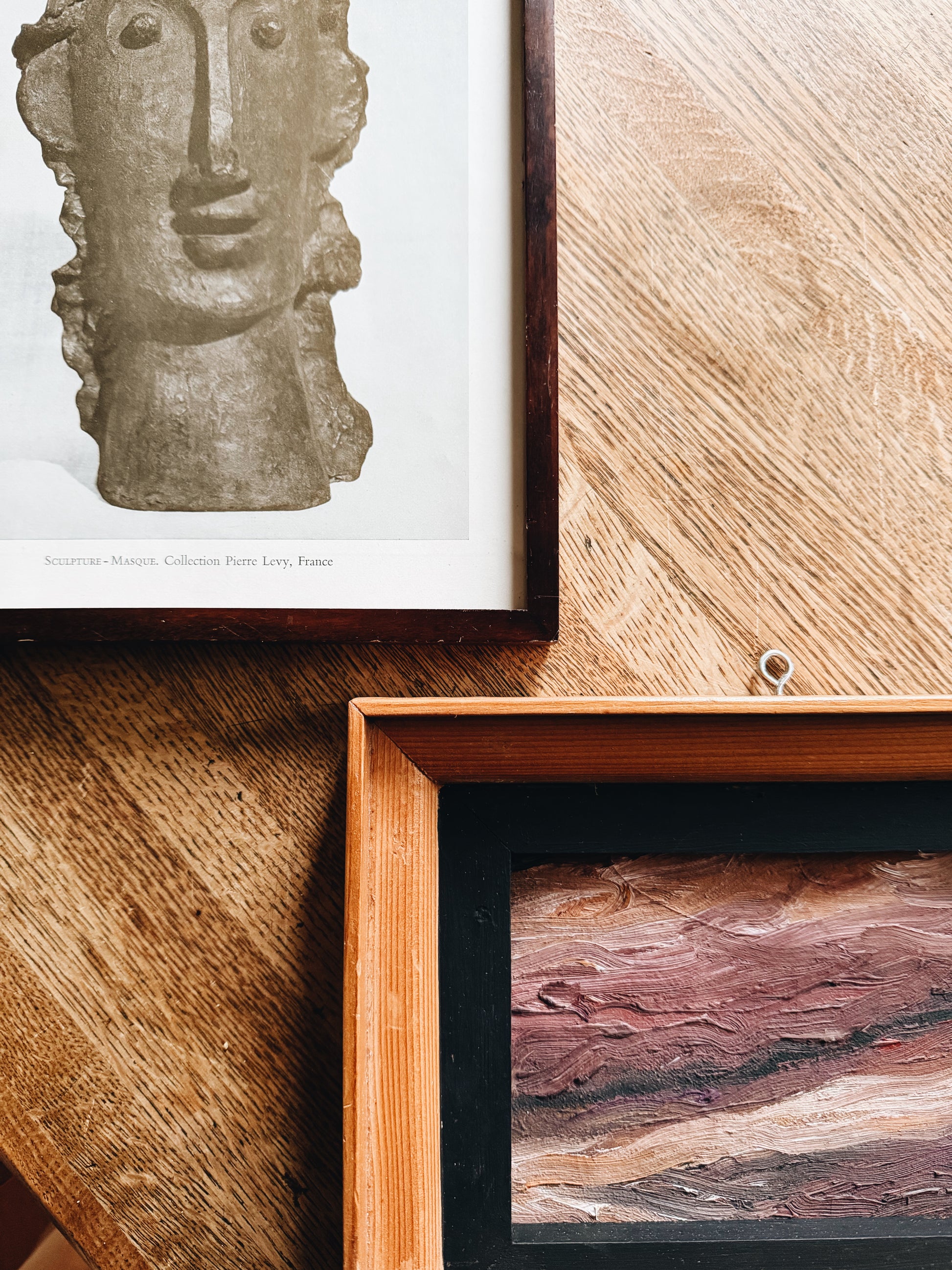 Wonderful smaller original painting in the expressionist style. Abstract with lots of movement and texture. Framed in vintage wood. Nice for an art wall addition or small wall
