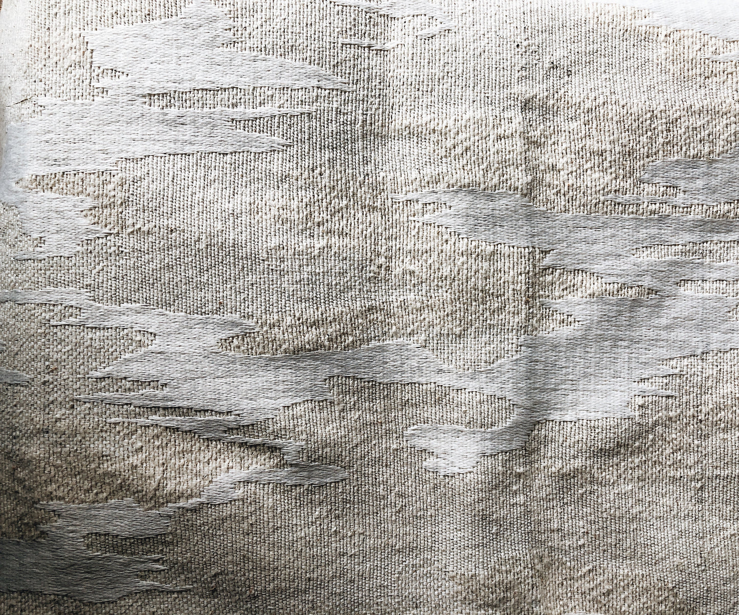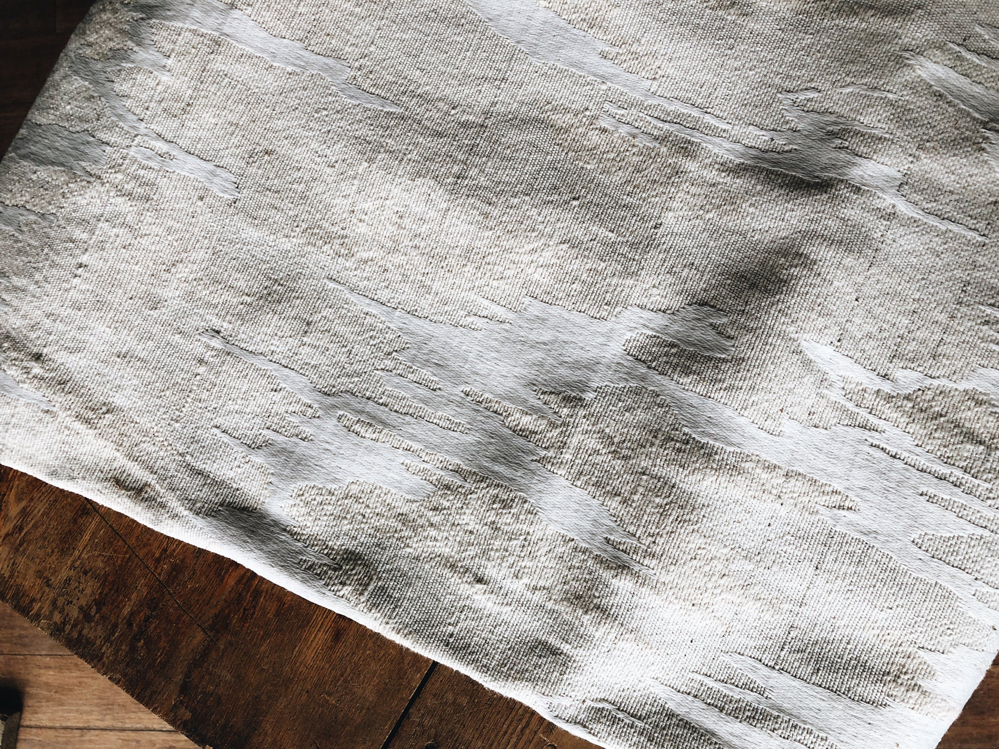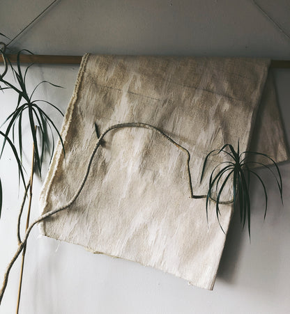 Vintage piece of upholstery fabric. Would look great on our modern futon. Stunning abstract damask weave. Warm white on Cream colored, lined.