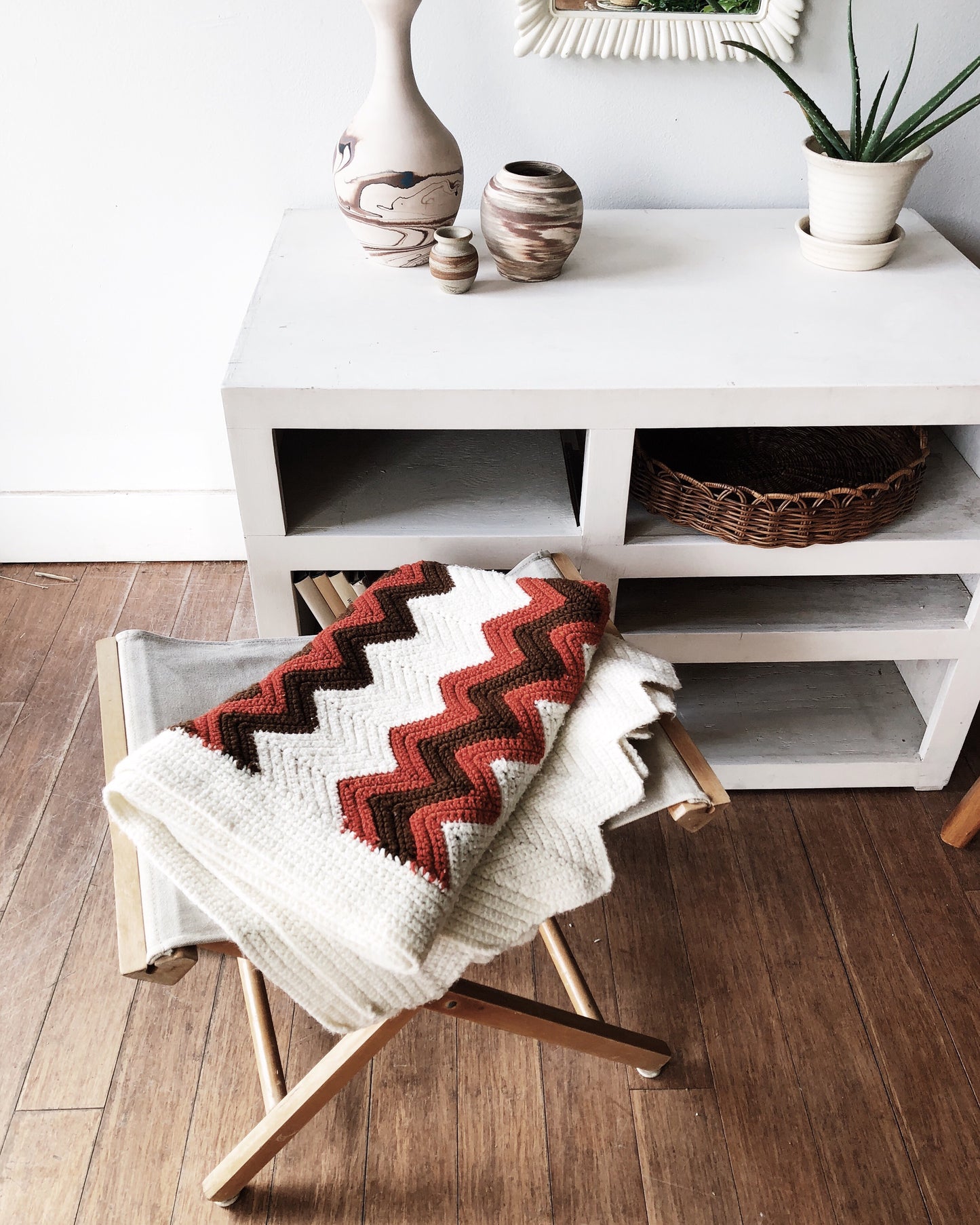 A fabulously colored handmade vintage blanket. We love vintage Afghans for their homey appeal. Great condition