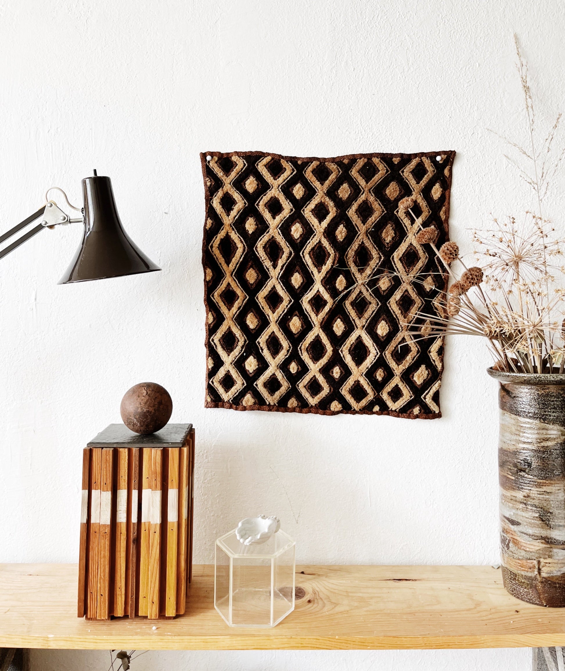 Gorgeous vintage African KUSA cloth. We love these hung on the wall as art. Kuba is a highly textural and traditionally woven raffia fiber textile, by the men of the Congo tribe