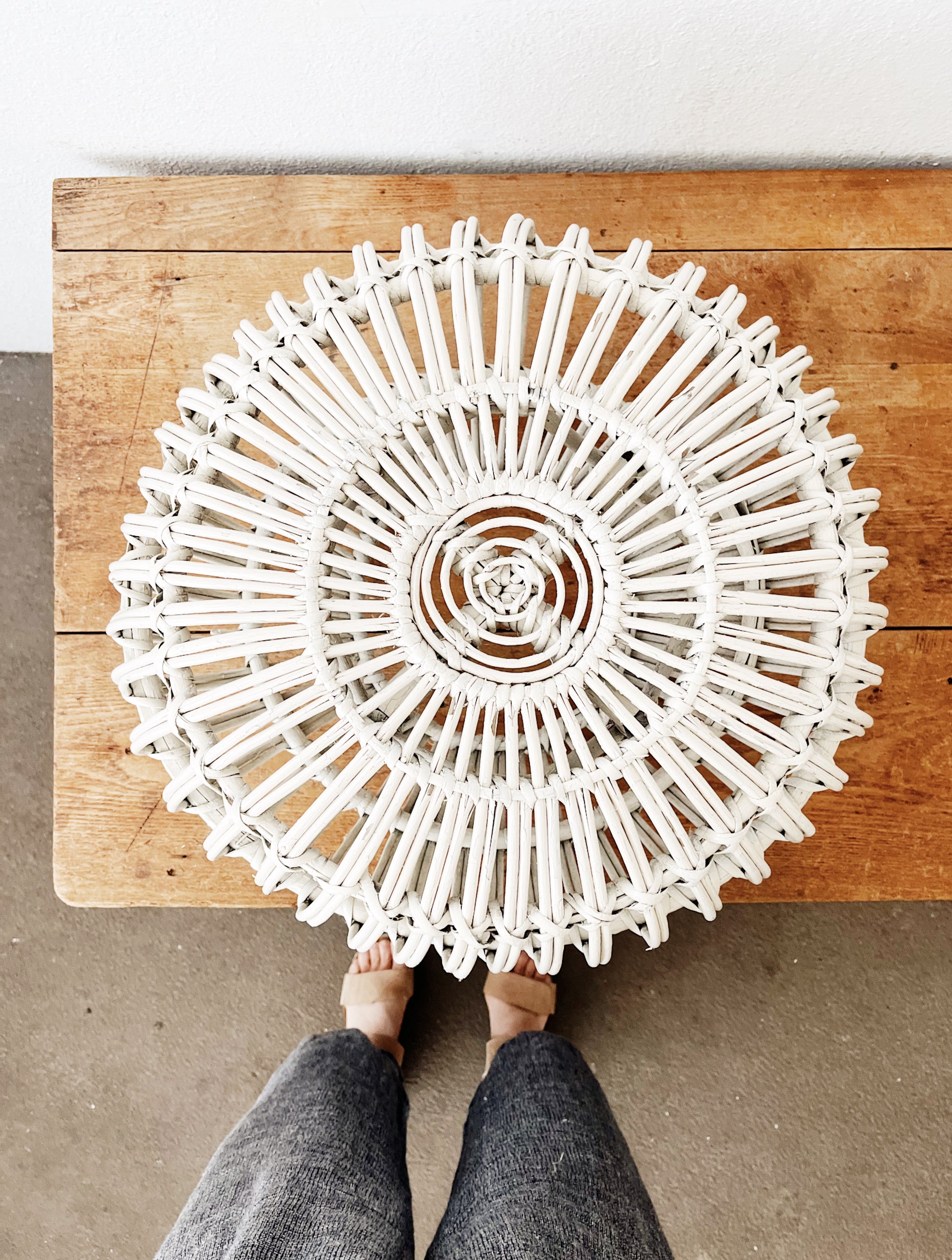 Chunky vintage albini style stool in painted white. In great condition structurally with just a little surface wear.