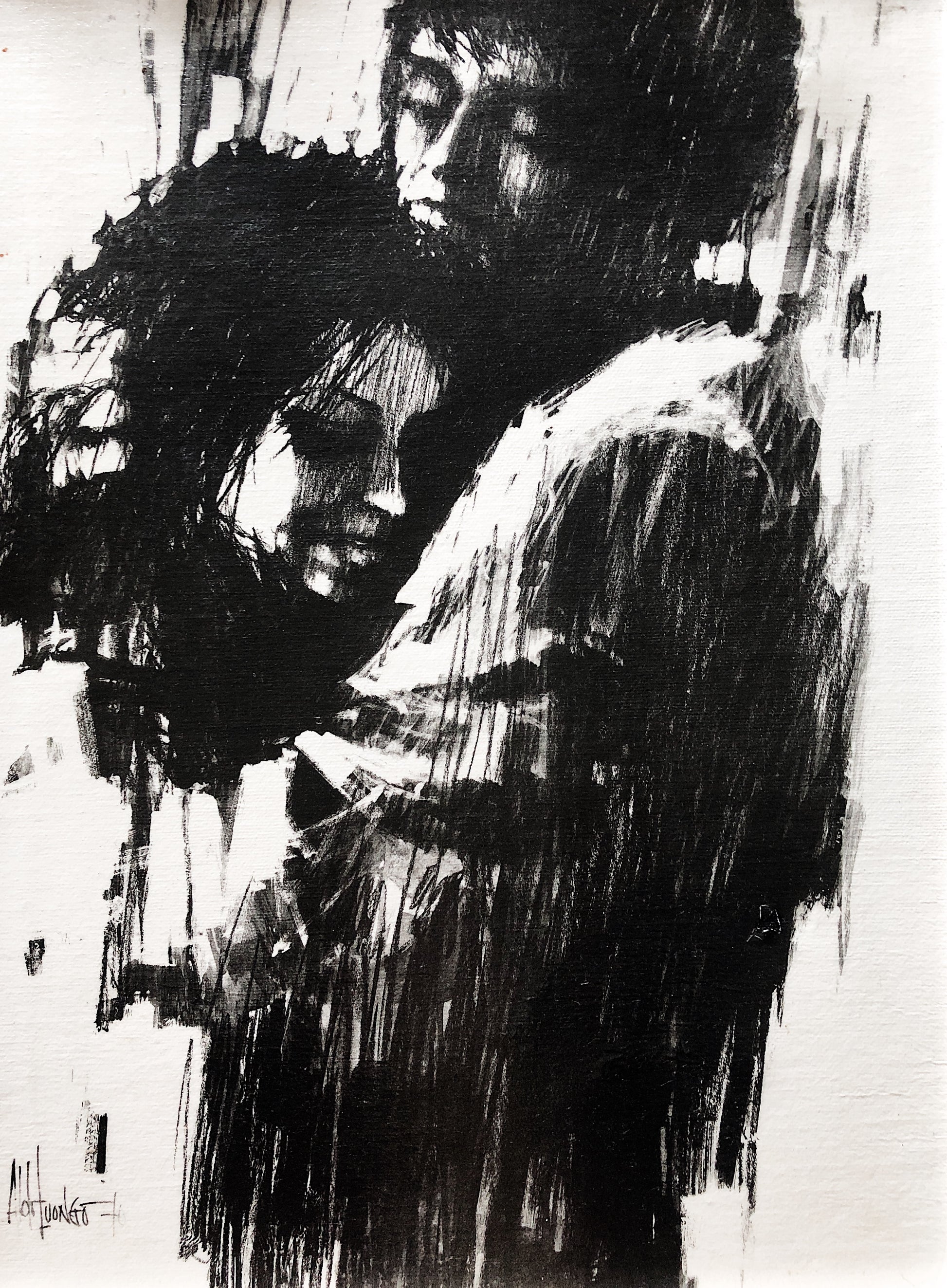 A great find. Argentinian artist Alto Luongo’s sketch from his lovers series. Painted litho on canvas. Dated 1970 and framed in painted wood without glass