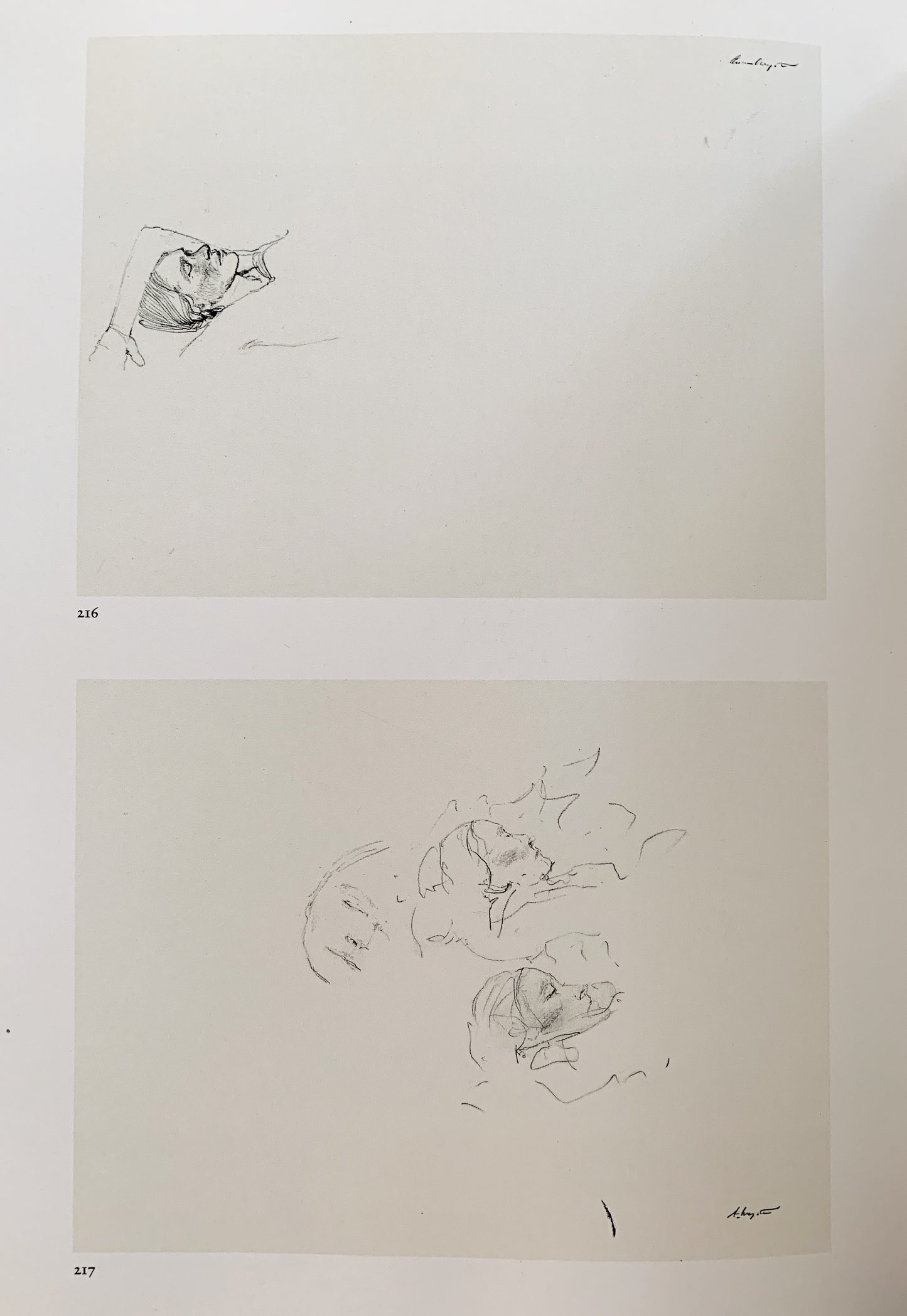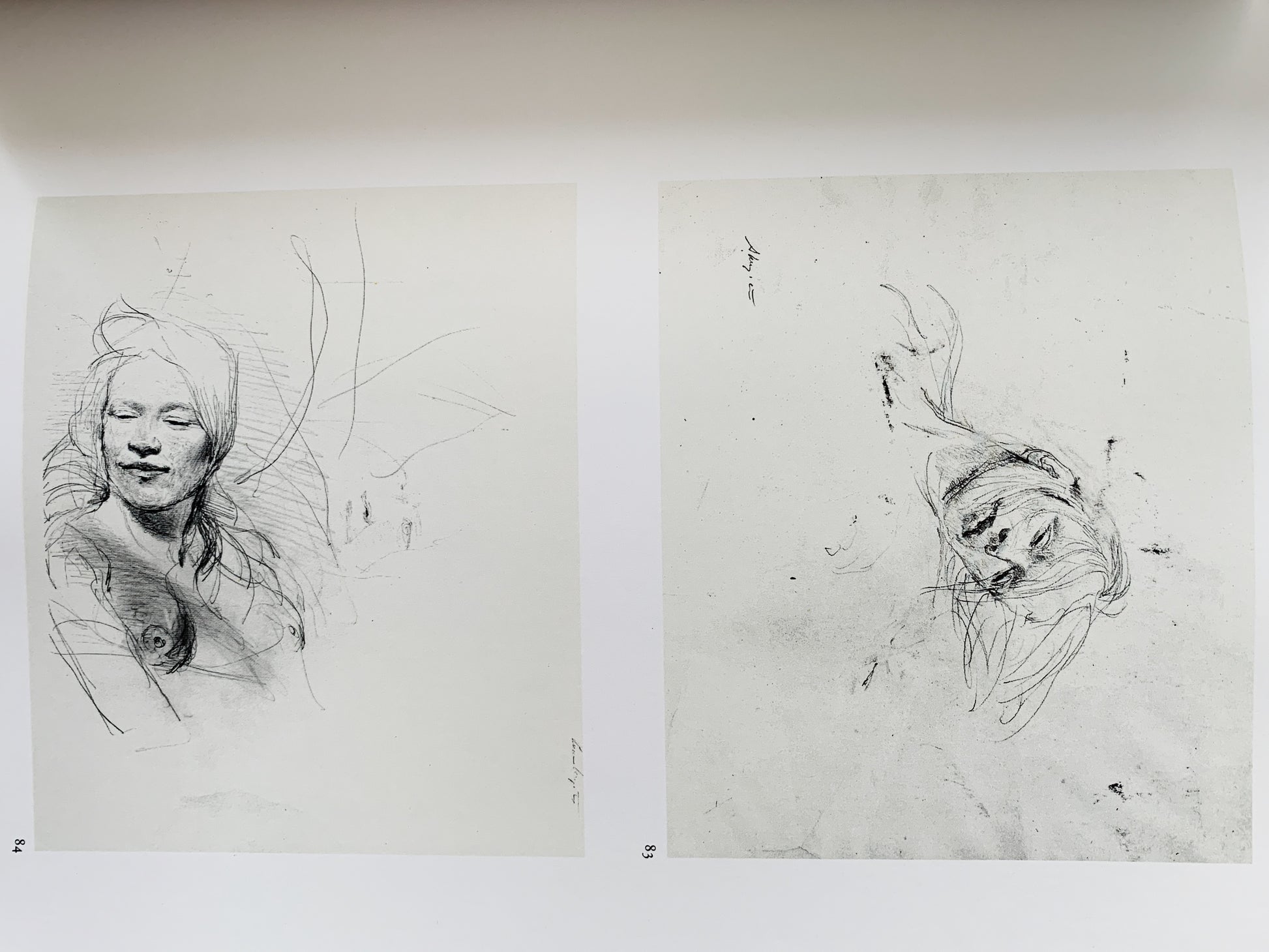 making up the whole are at least thirty different interrelated poses, ranging from only a single study in a few instances, through others involving a handful of sketches, to a few consisting of more than a dozen works.