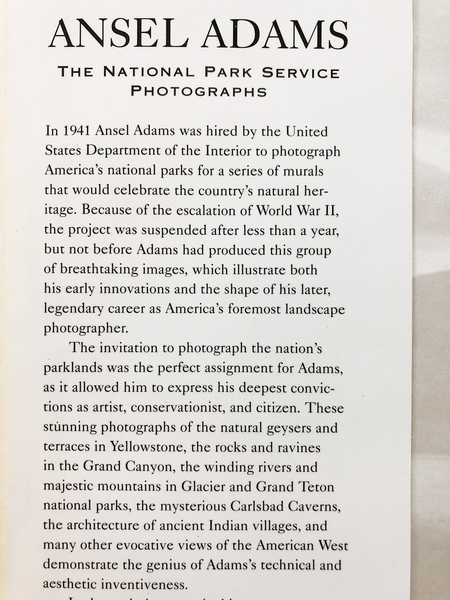 1995 copy hardcover 140 pages of black and white photos of the national parks that Ansel Adams was hired by the United States department of the interior to photograph in 1941