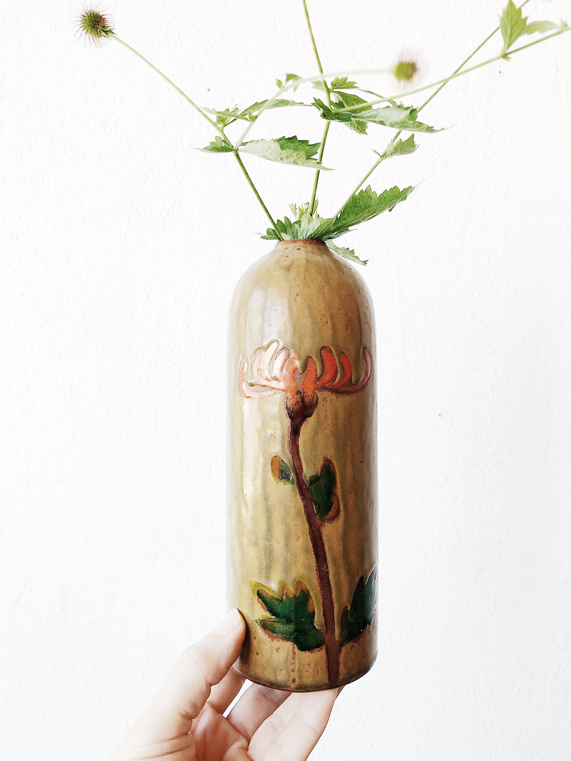 Double sided art pottery vase. Poppies in red and white, and a lovely shape to the vessel