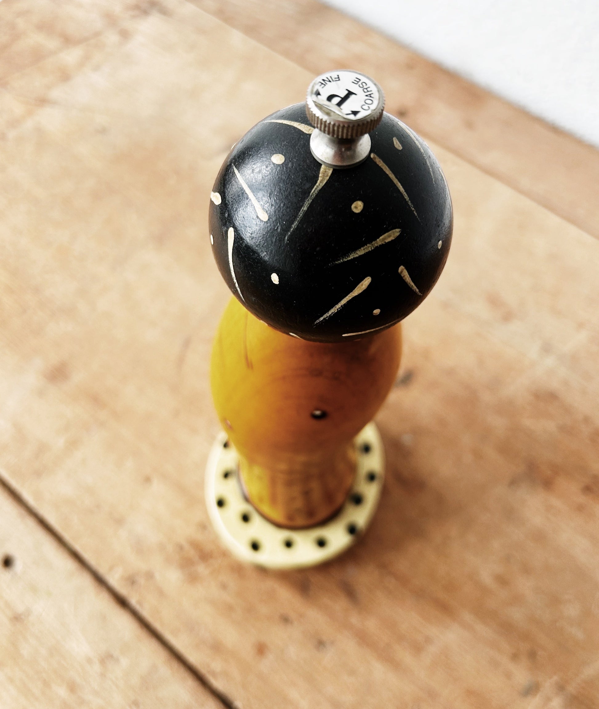 Fun, whimsical artisan made pepper mill. Signed and dated c1998