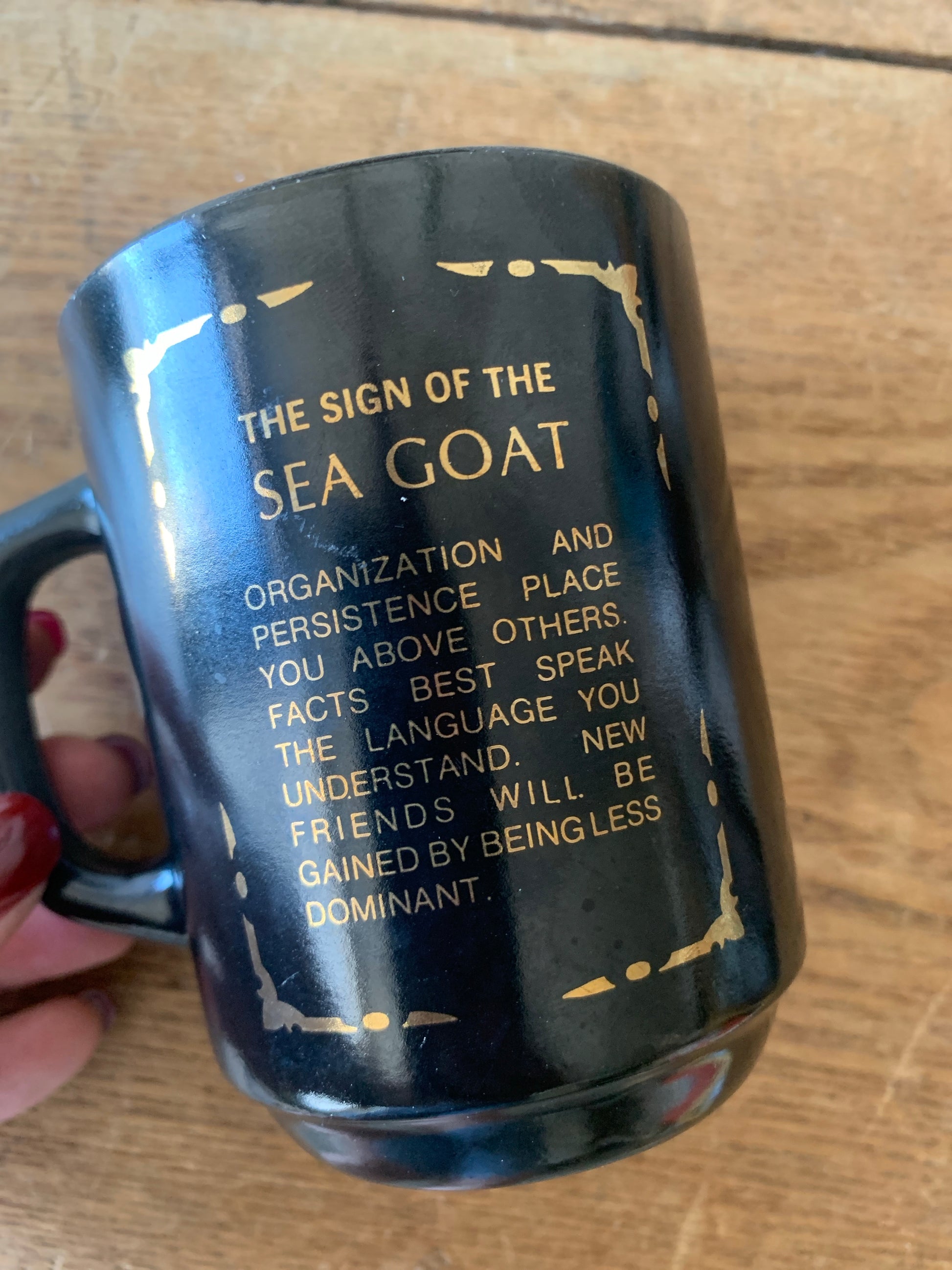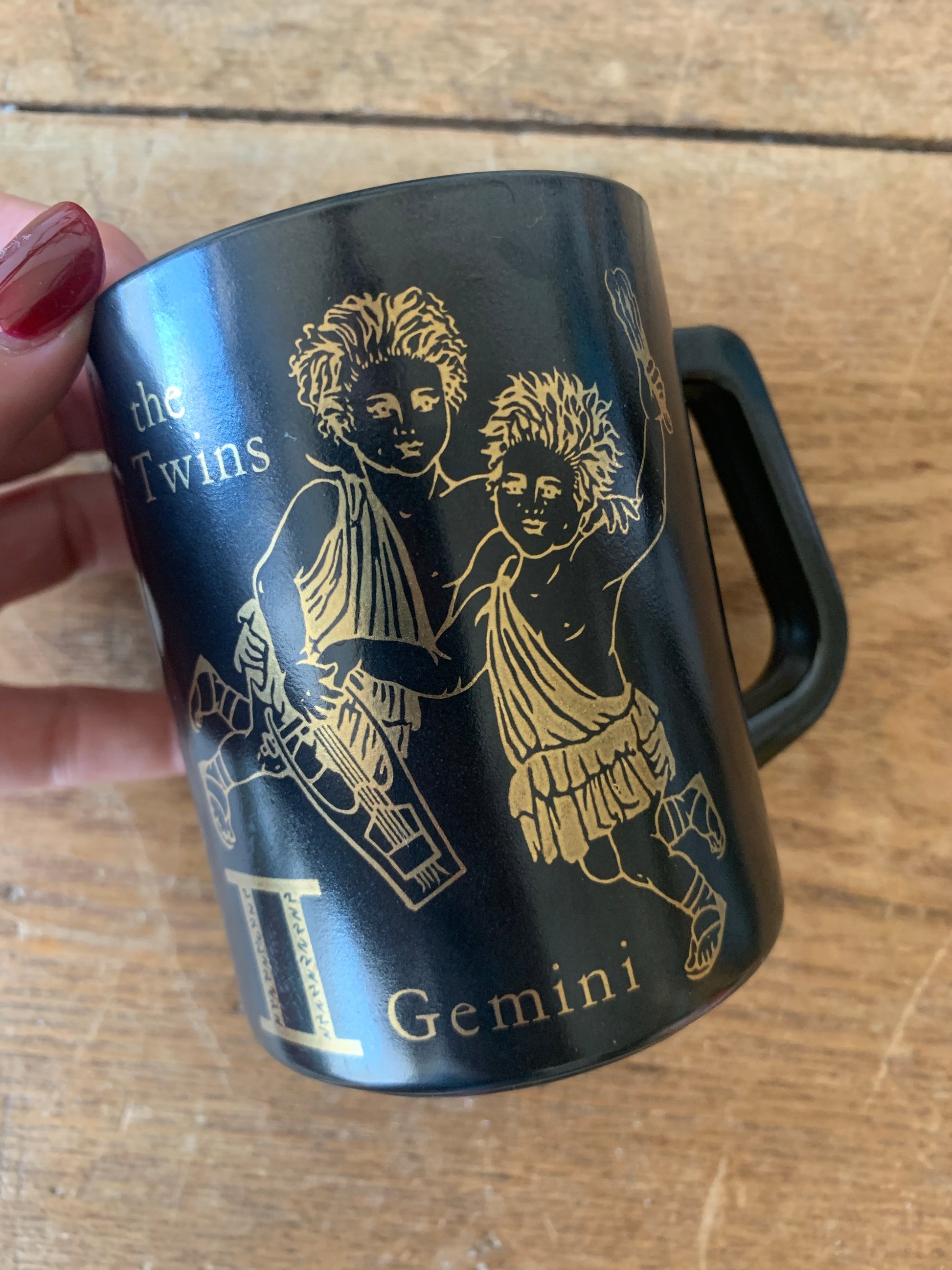 Vintage Fire King zodiac mug in black with gold foil. Excellent condition. 12oz