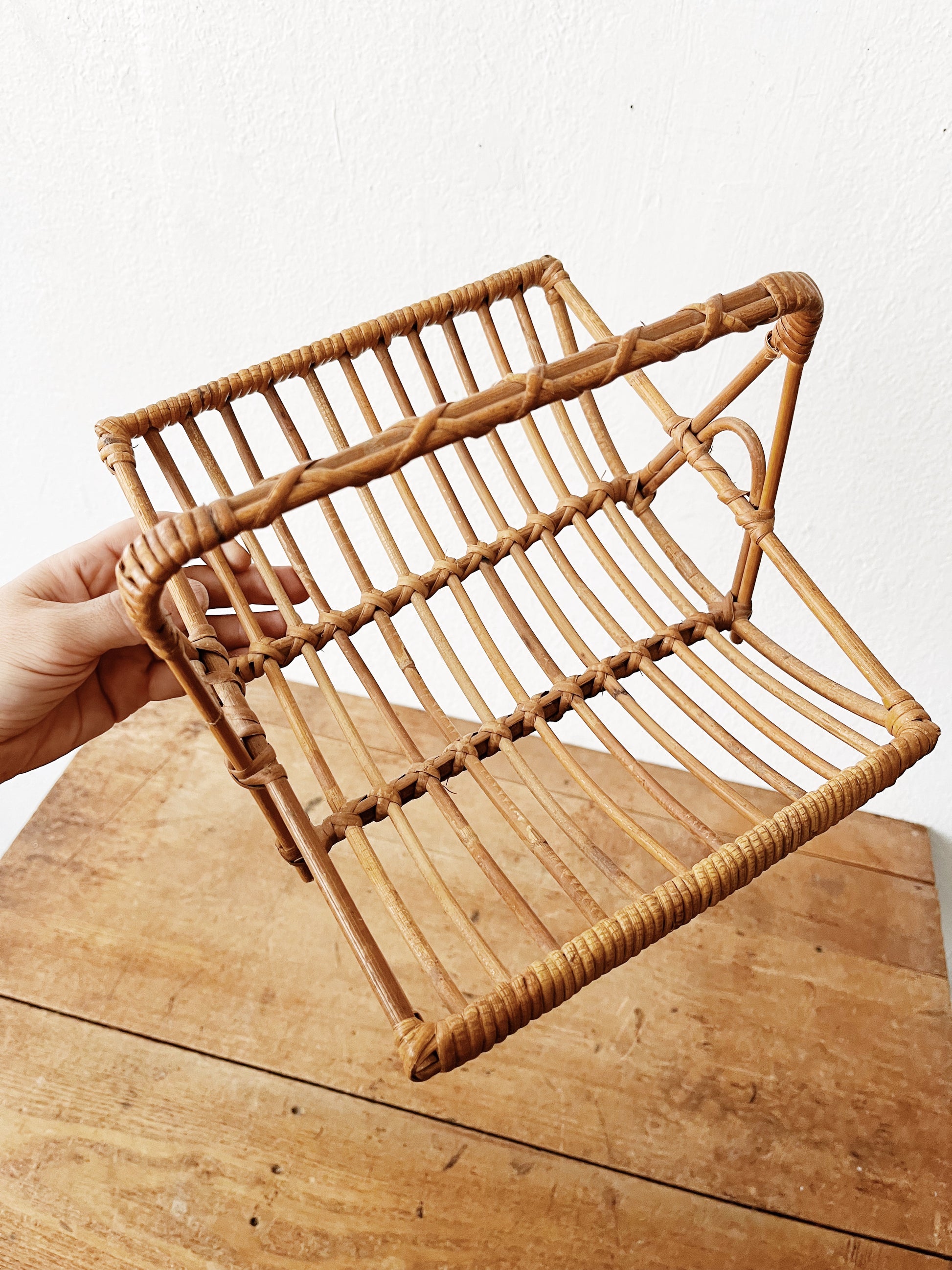 A bamboo basket that would love to be filled with ripe fruits of the season. Delicate looking yet sturdy. A bit larger than appears here