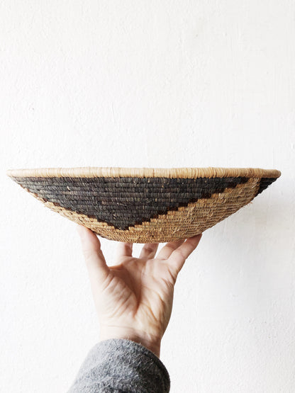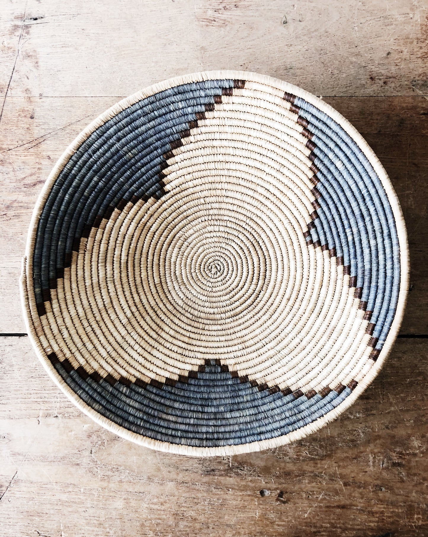 Vintage basket with blue grey and brown tones and colors, great patina.