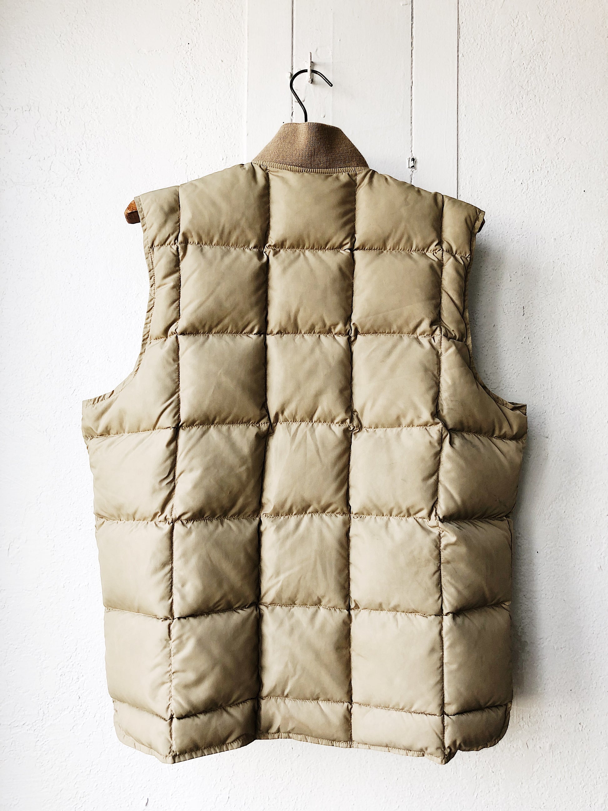 Classic Bauer puffer vest in tan. Jersey ribbed collar and peaked hem. Nice condition