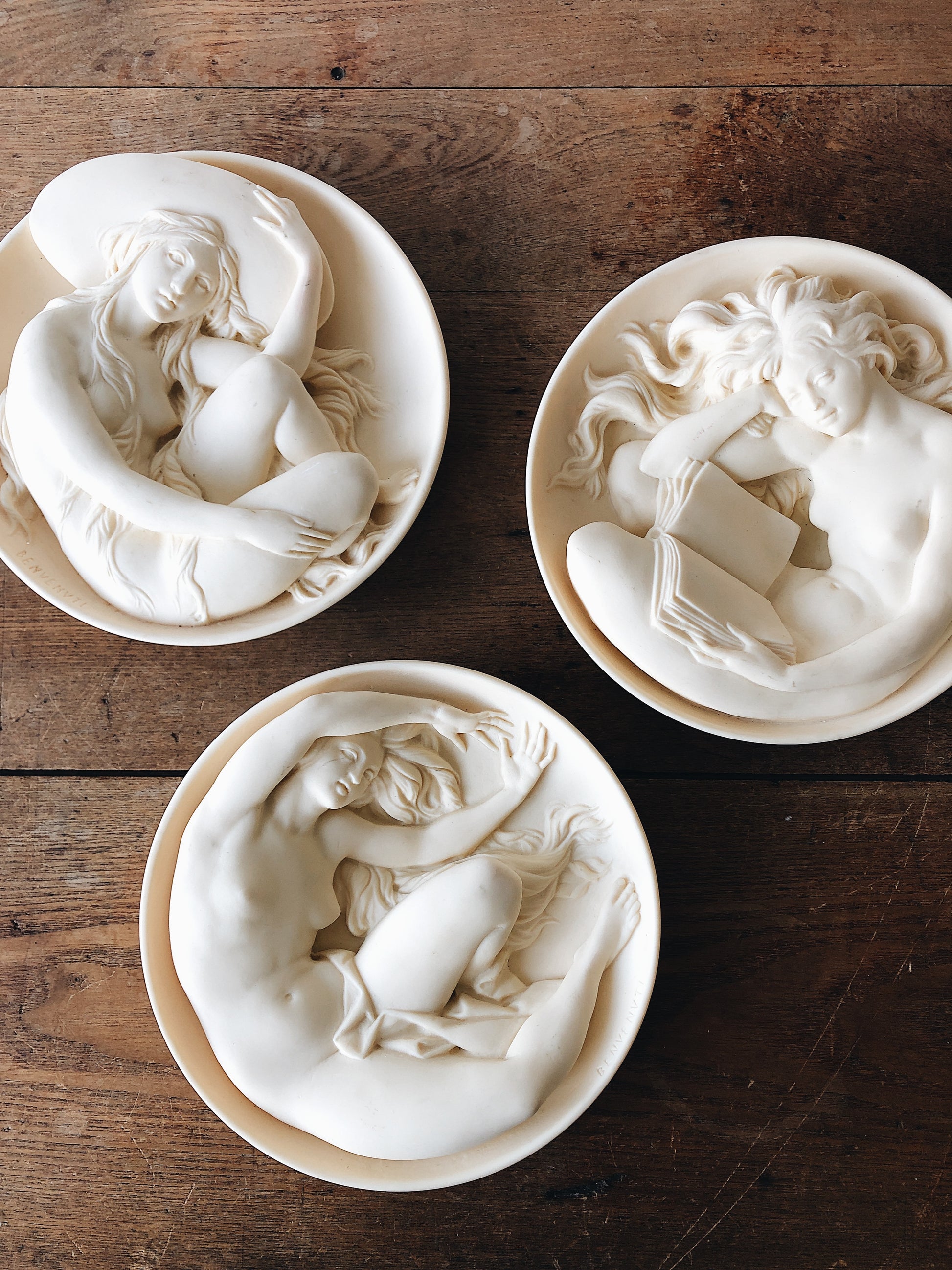 Gorgeous Italian three dimensional alabaster sculptures of the Muses by reknown sculptor Sergio Benvenuti.
