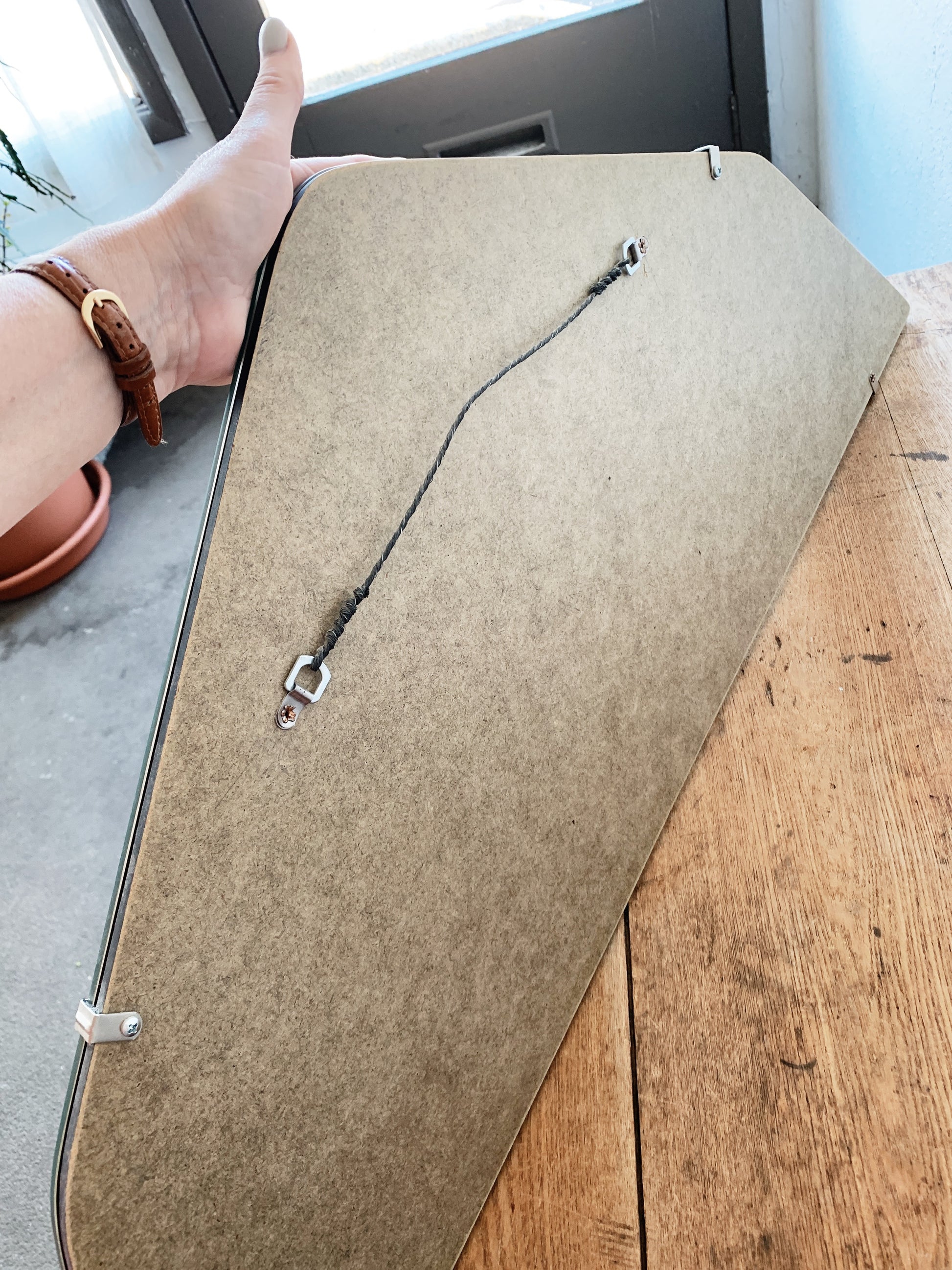 Glorious arched beveled mirror in perfect condition. Hanger on back, mid weight.
