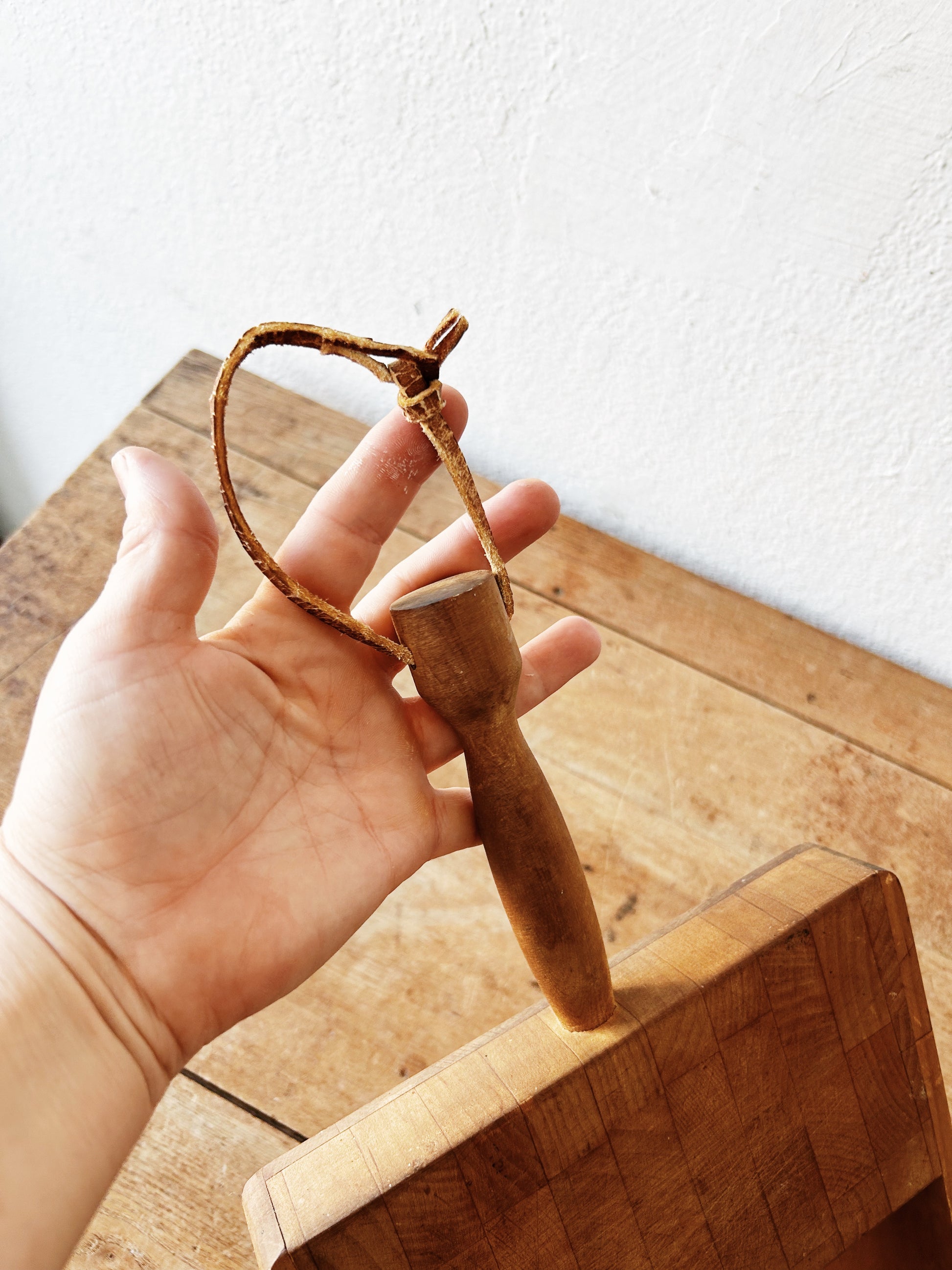 Vintage Brandenfels cutting and serving board made of red alder butchers block. Rawhide loop hanger. Riveted construction. A forever piece. Made in Scapoose Oregon