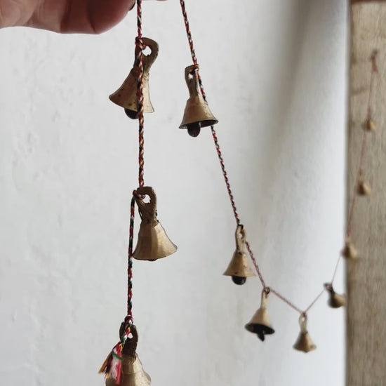 Long strand of delicate brass bells. Strung on silk cord. The sweetest tinkling sound