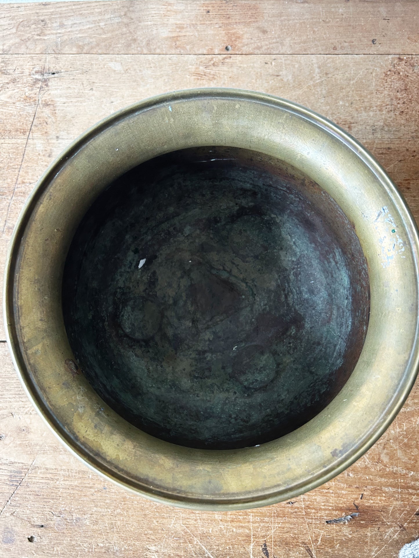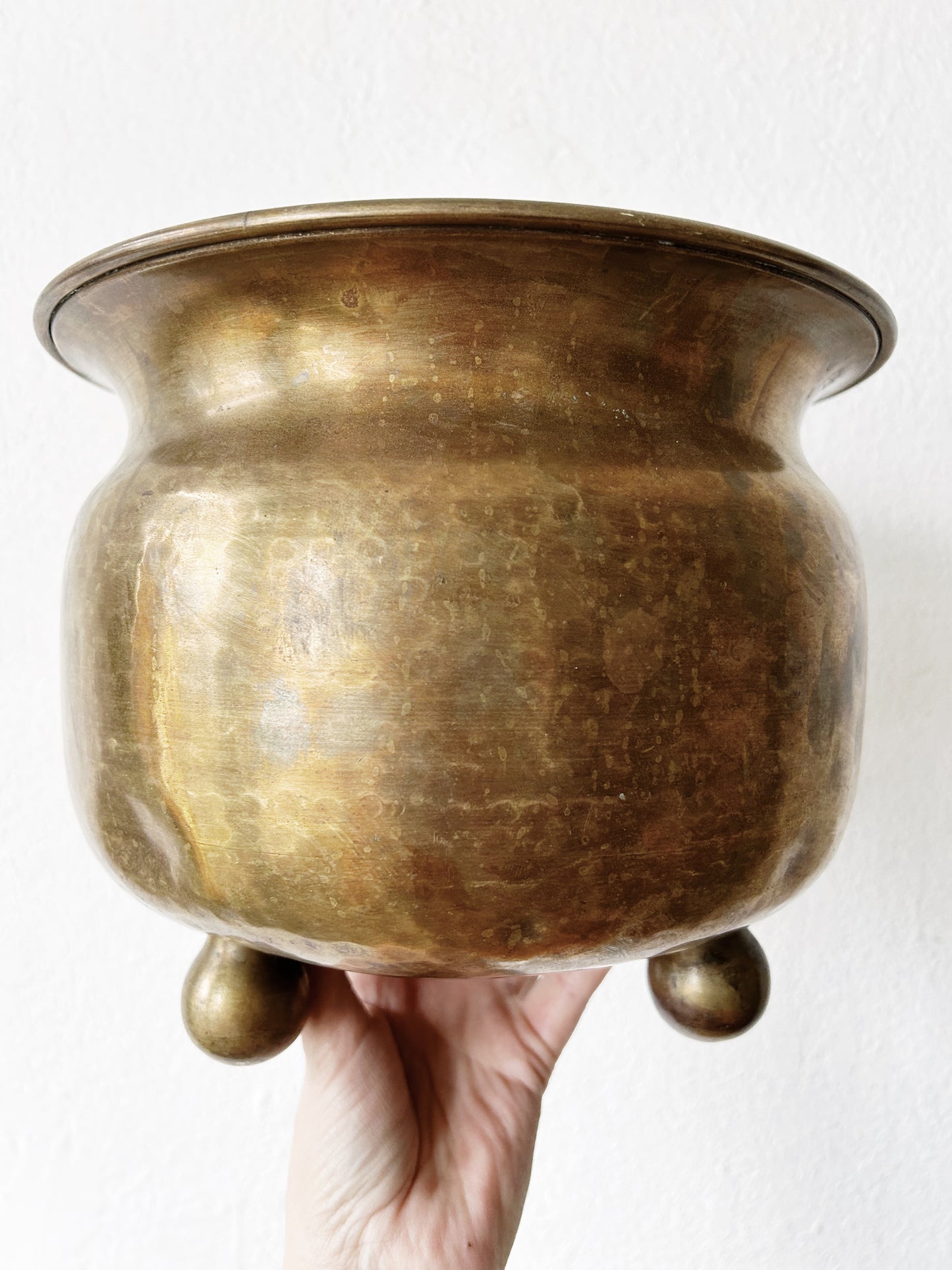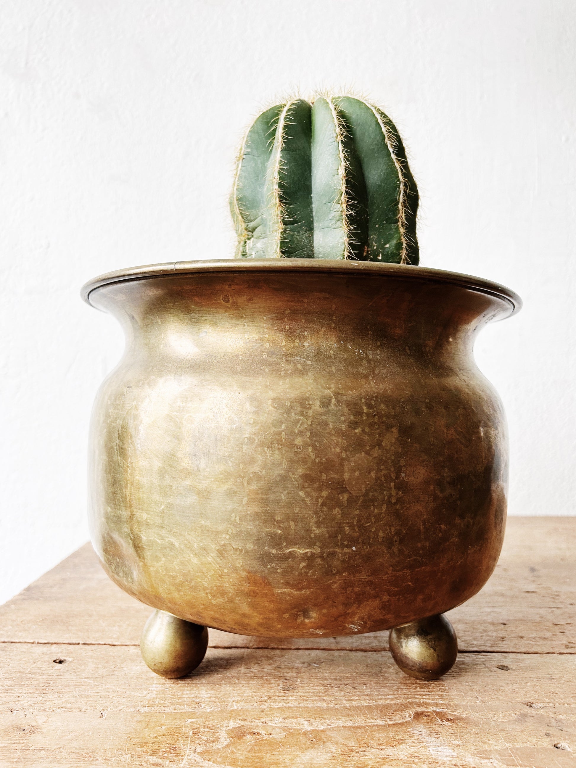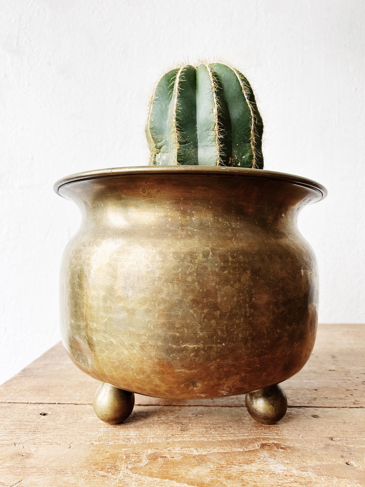 A nice one, large aged brass with ball feet cache pot. Perfect home for one of your treasured plant friends.
