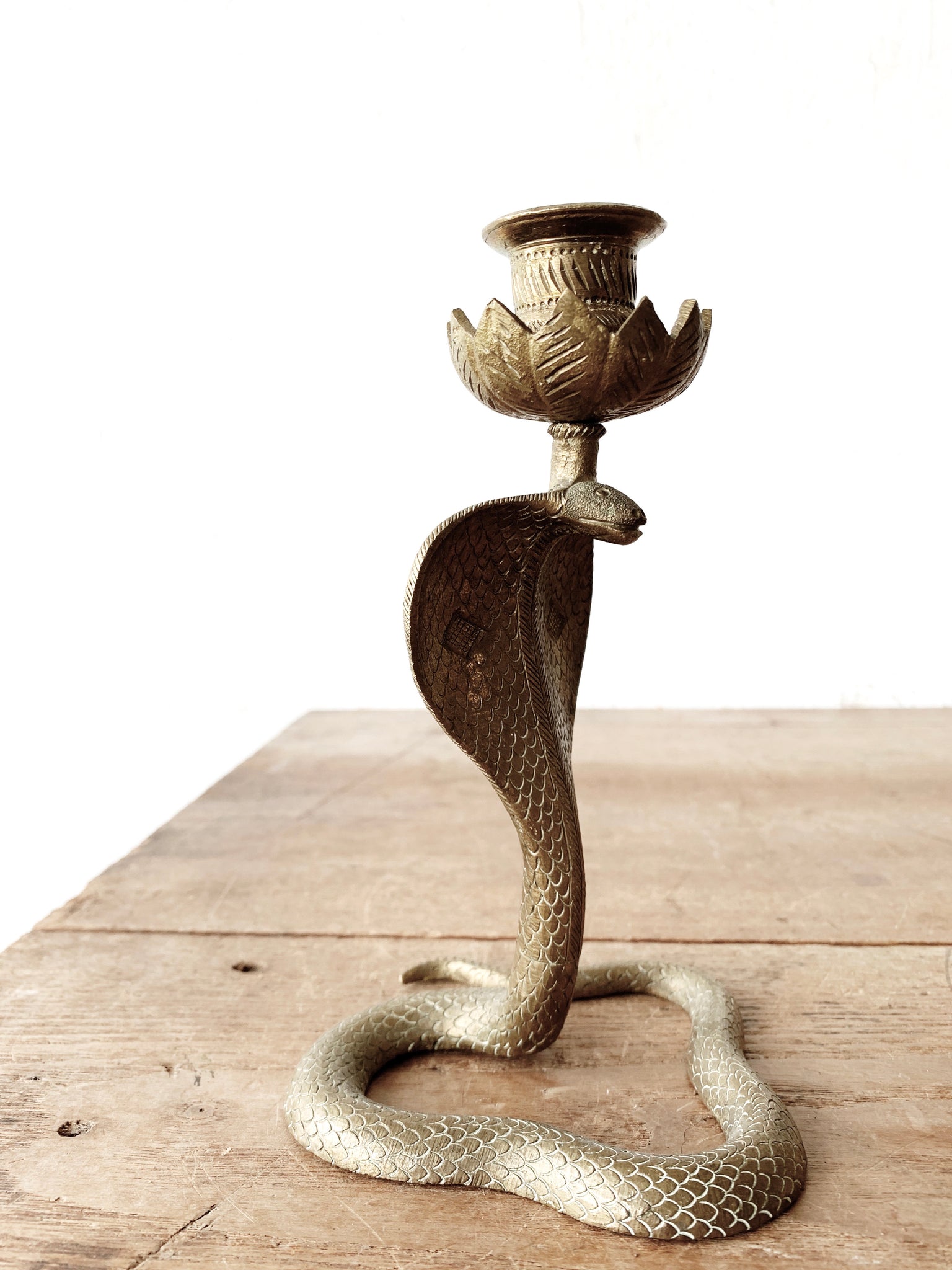 Amazing weighty vintage incised brass cobra candle holder. Love it!