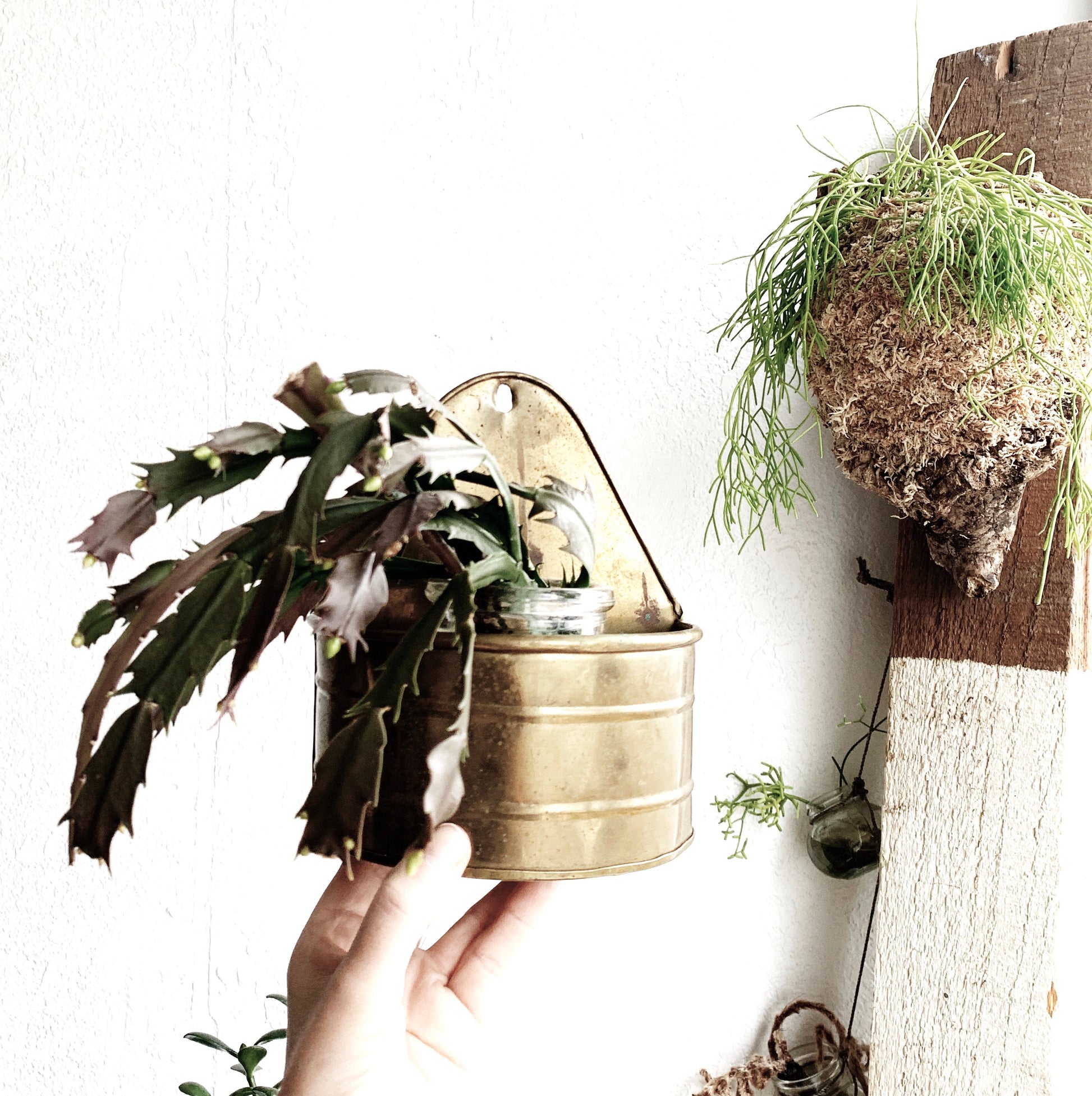 Nicely aged brass wall planter. Perfect for holding plant baby starts!