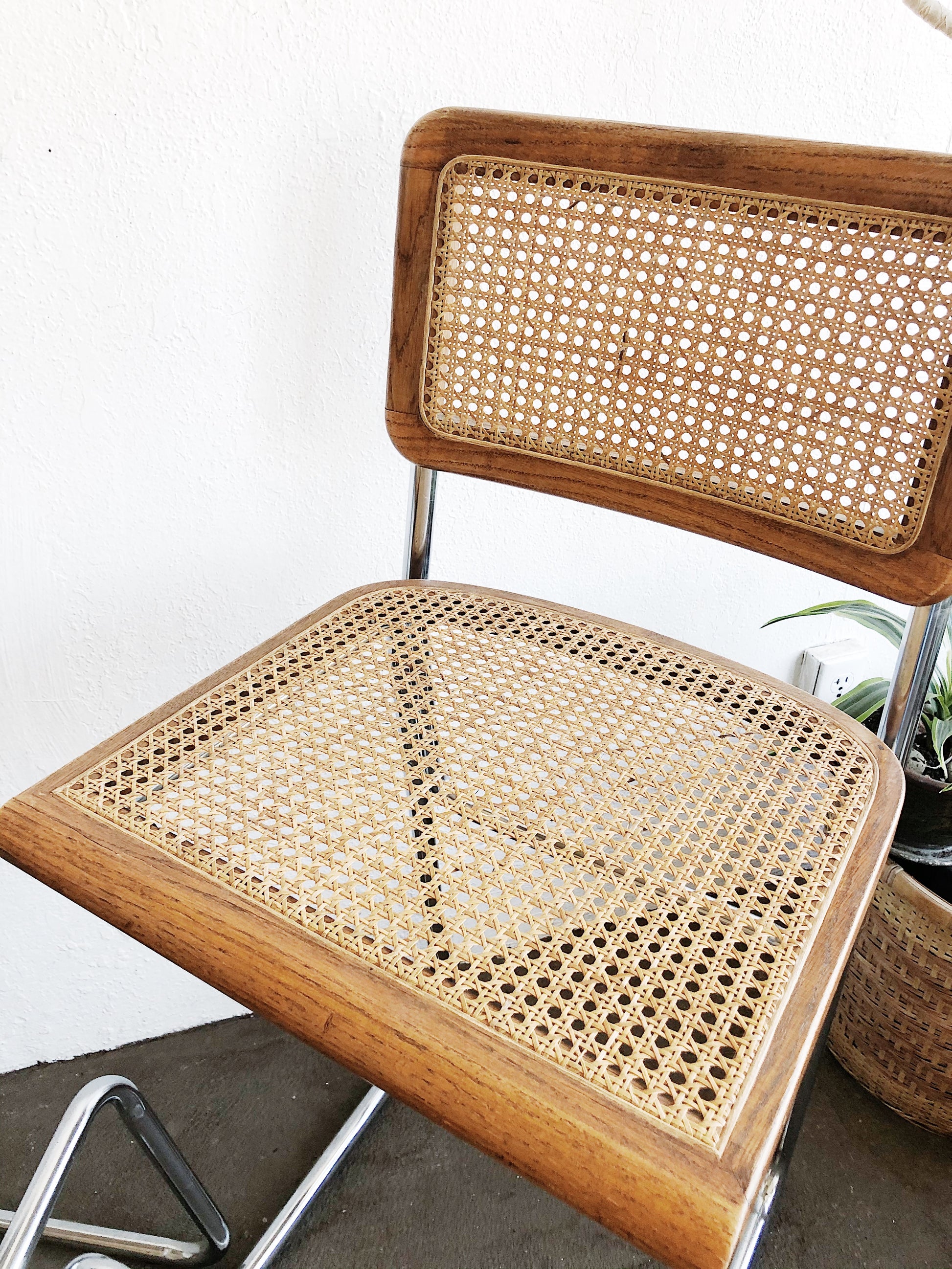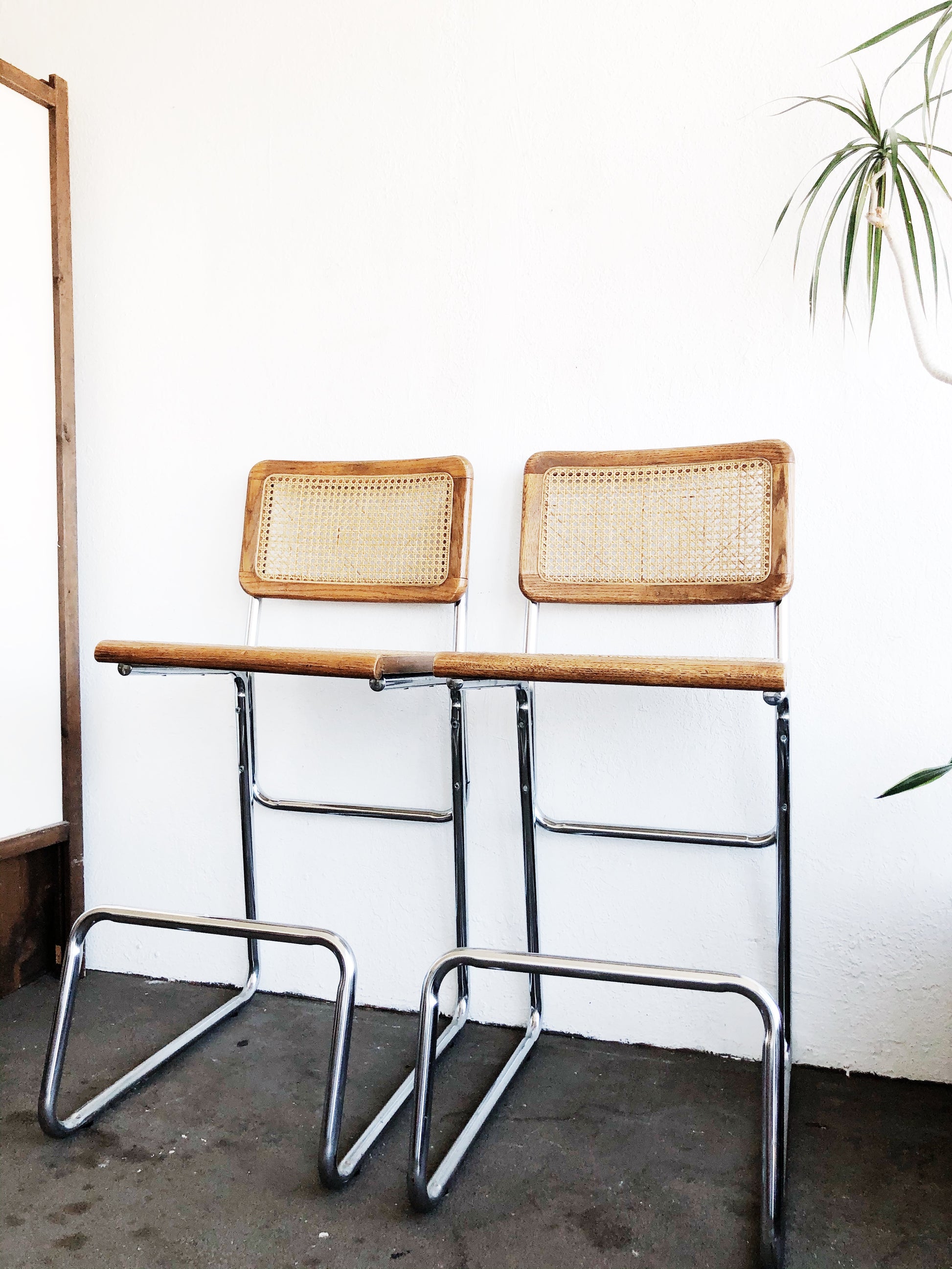 Mid century Marcel Breuer cesca style cantilevered bar stool. Larger footprint at the base. Super comfy. Caning in great condition