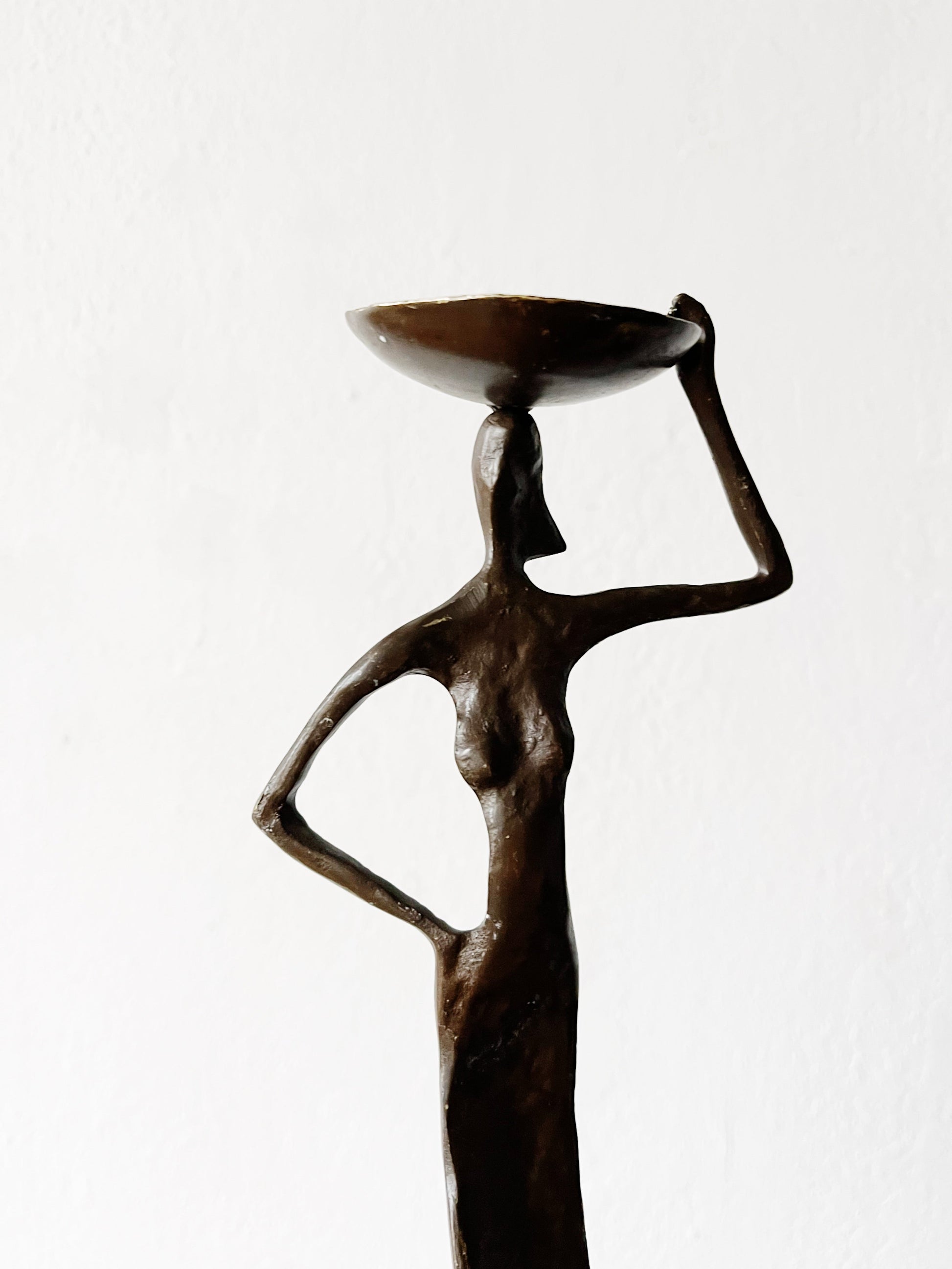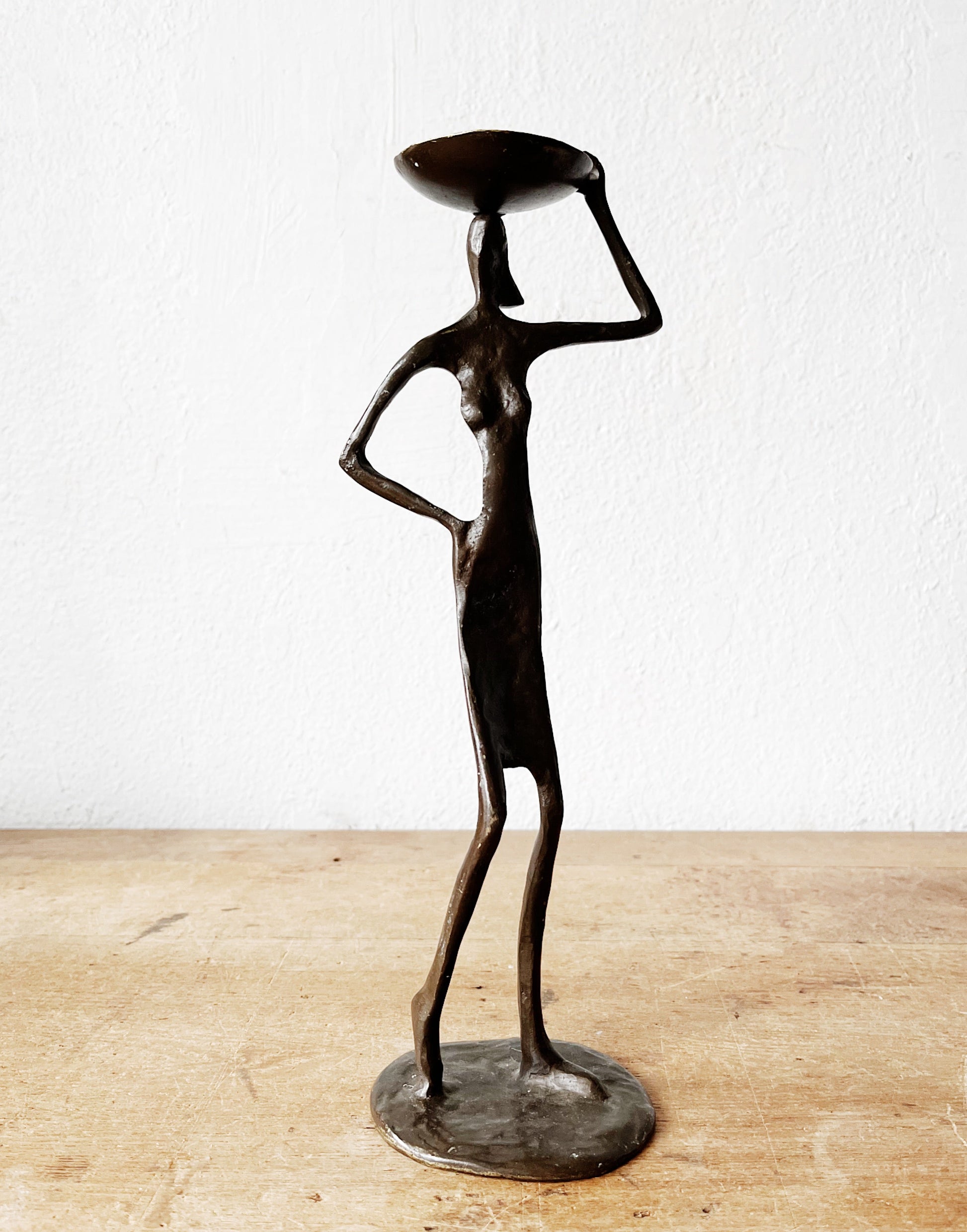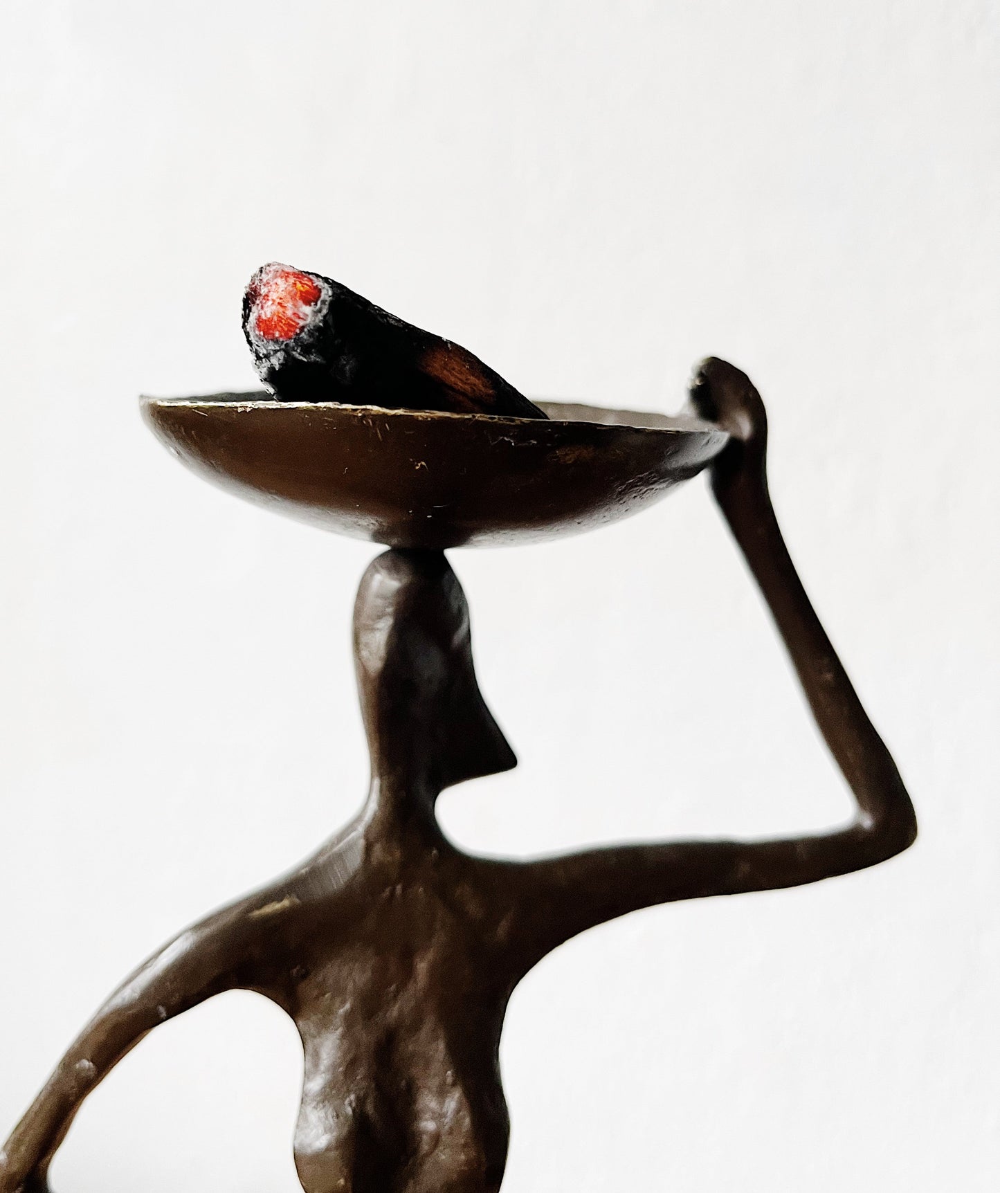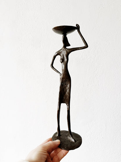 Gorgeous weighty bronze sculpture that can hold a tea light or incense in the bowl.