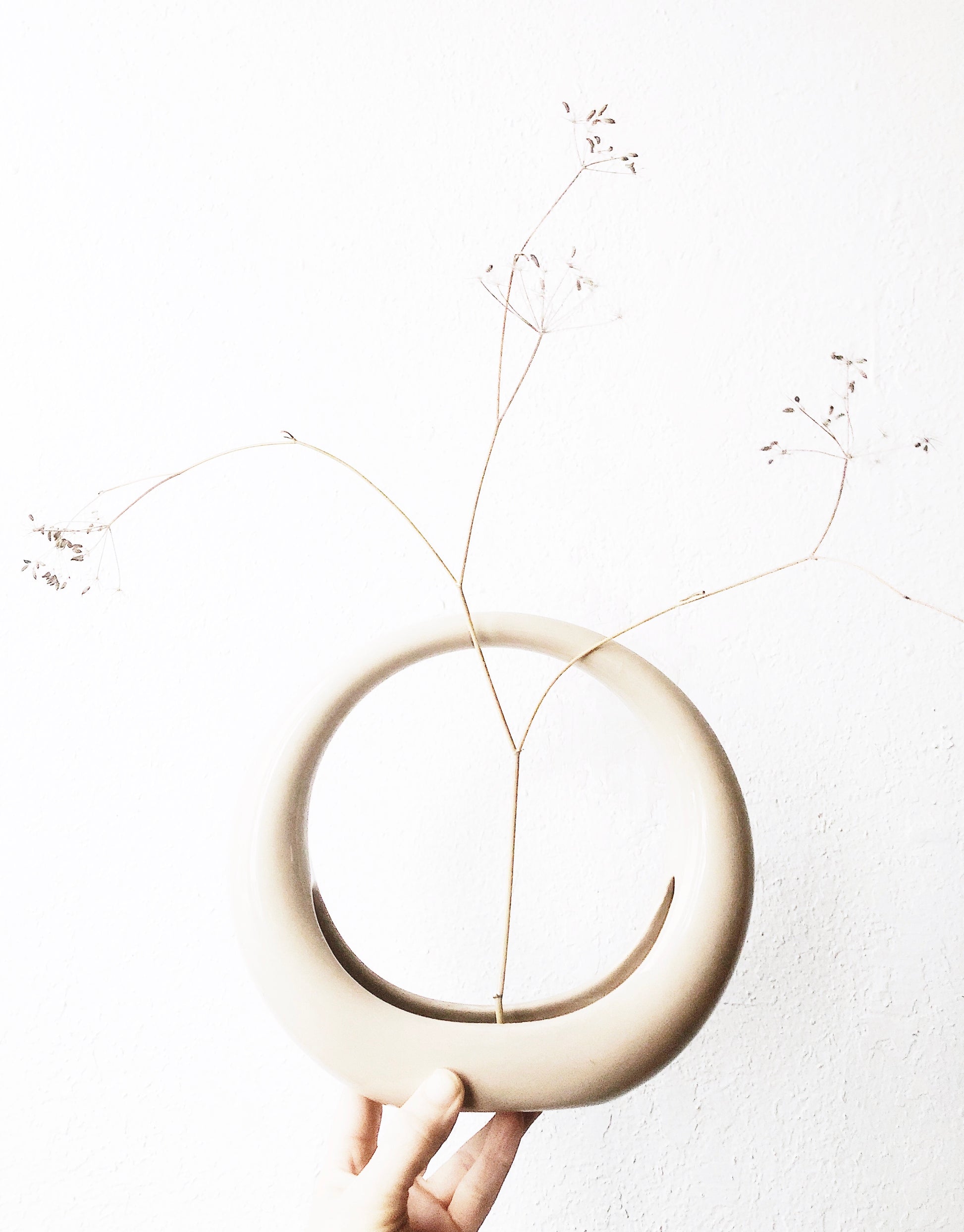 Vintage Buff Circular Ikebana Vase