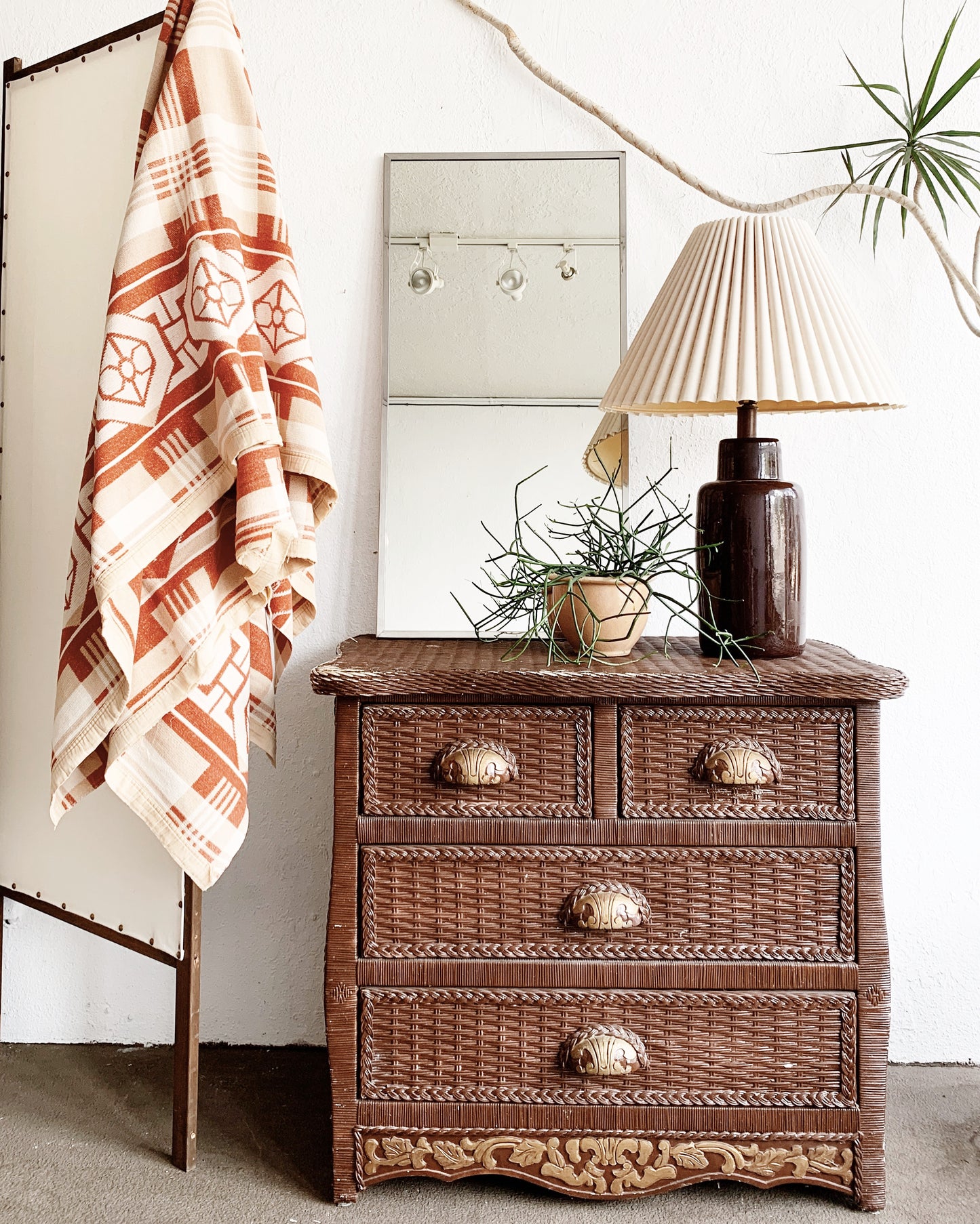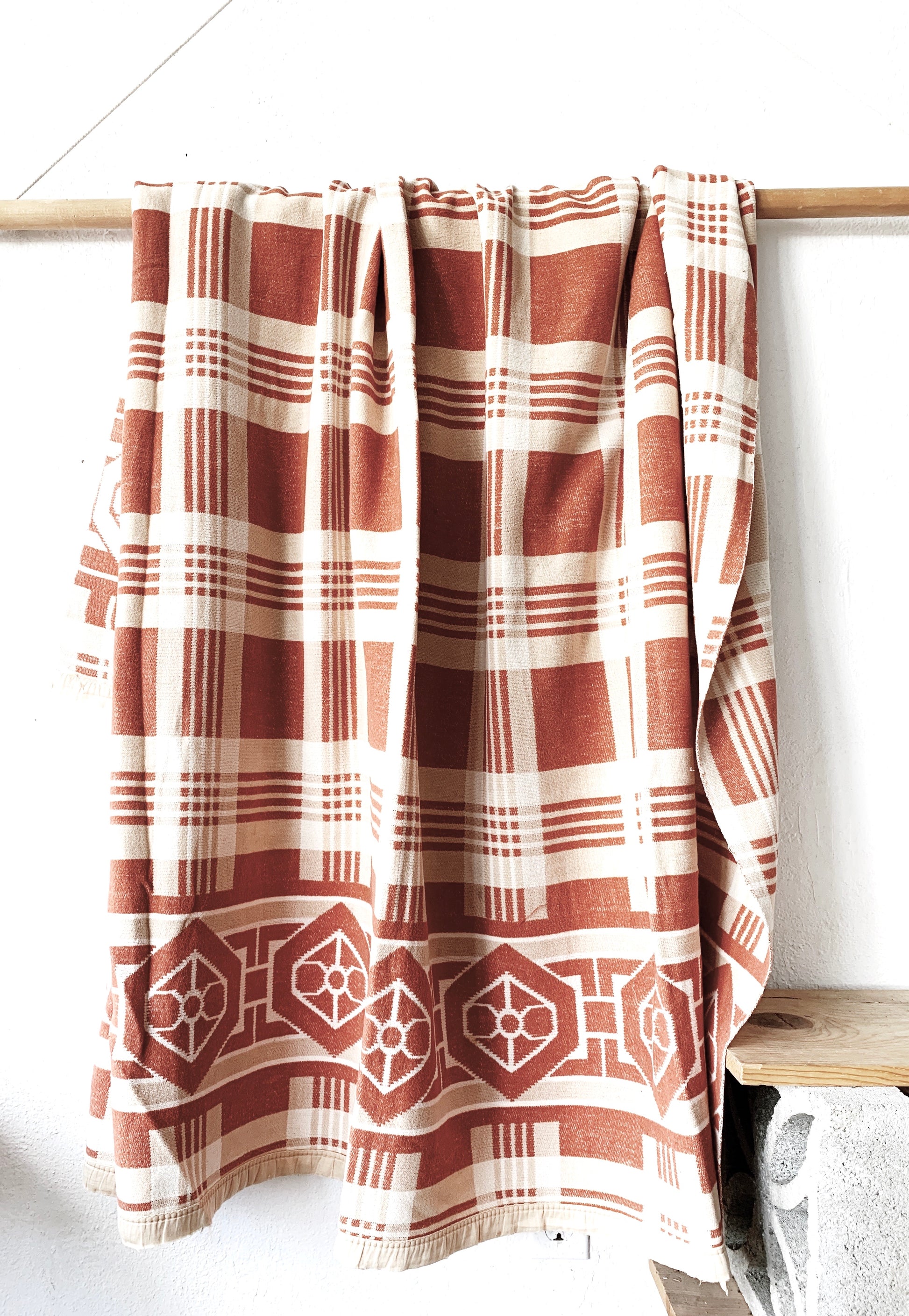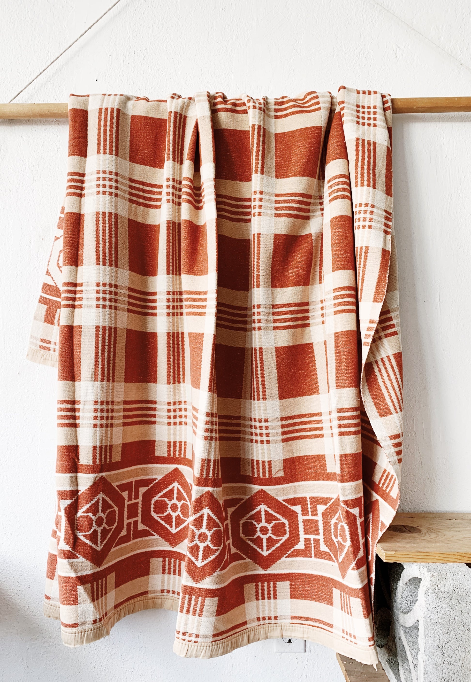 Fantastic colors and pattern on this vintage camp blanket. Lightweight, soft wool blend. Excellent condition, no stains. A little bit of trim unraveling in one area but not bad at all considering it’s age. Overall it’s in beautiful condition.