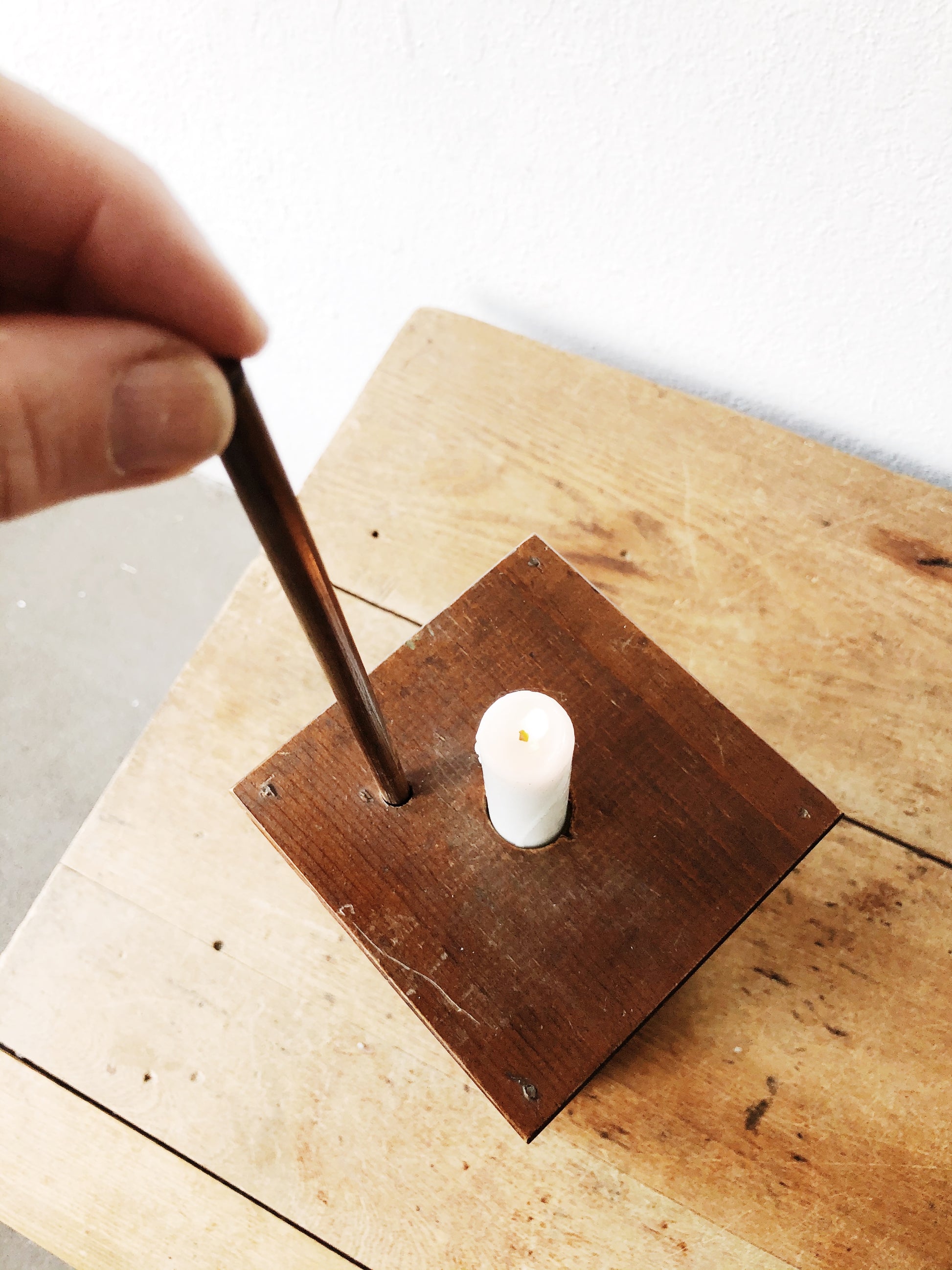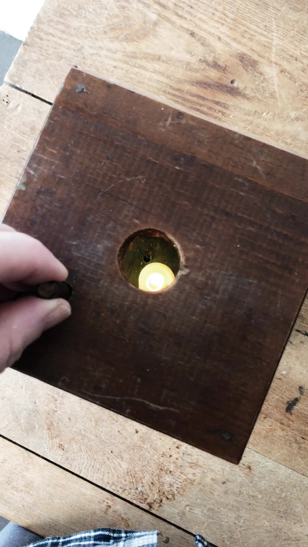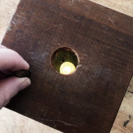 Vintage lantern. Wood framed resin with manual lift for lighting the candle.
