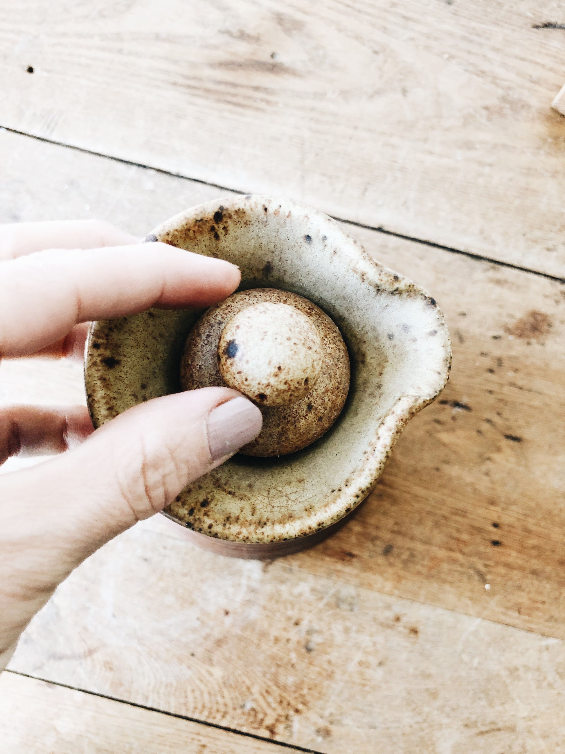 Hard to find these ceramic carafes with stopper intact. This one has nice earthy colors and a hefty weight