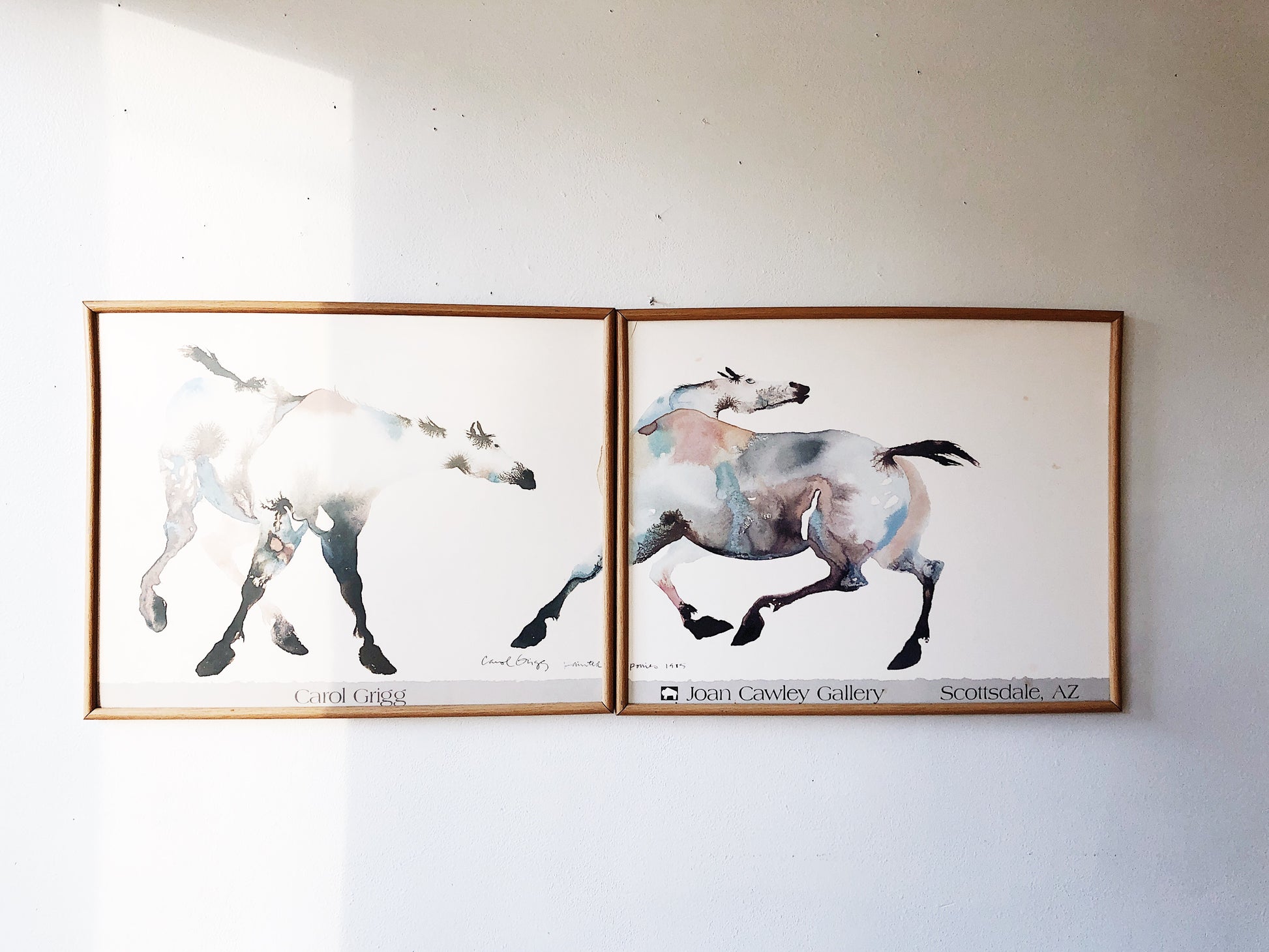 Local Oregon artist Carol Grigg mural titled ‘ponies’ c 1985. Each litho is framed separately in wood with a protective glare free plexi surface. Lovely colors!