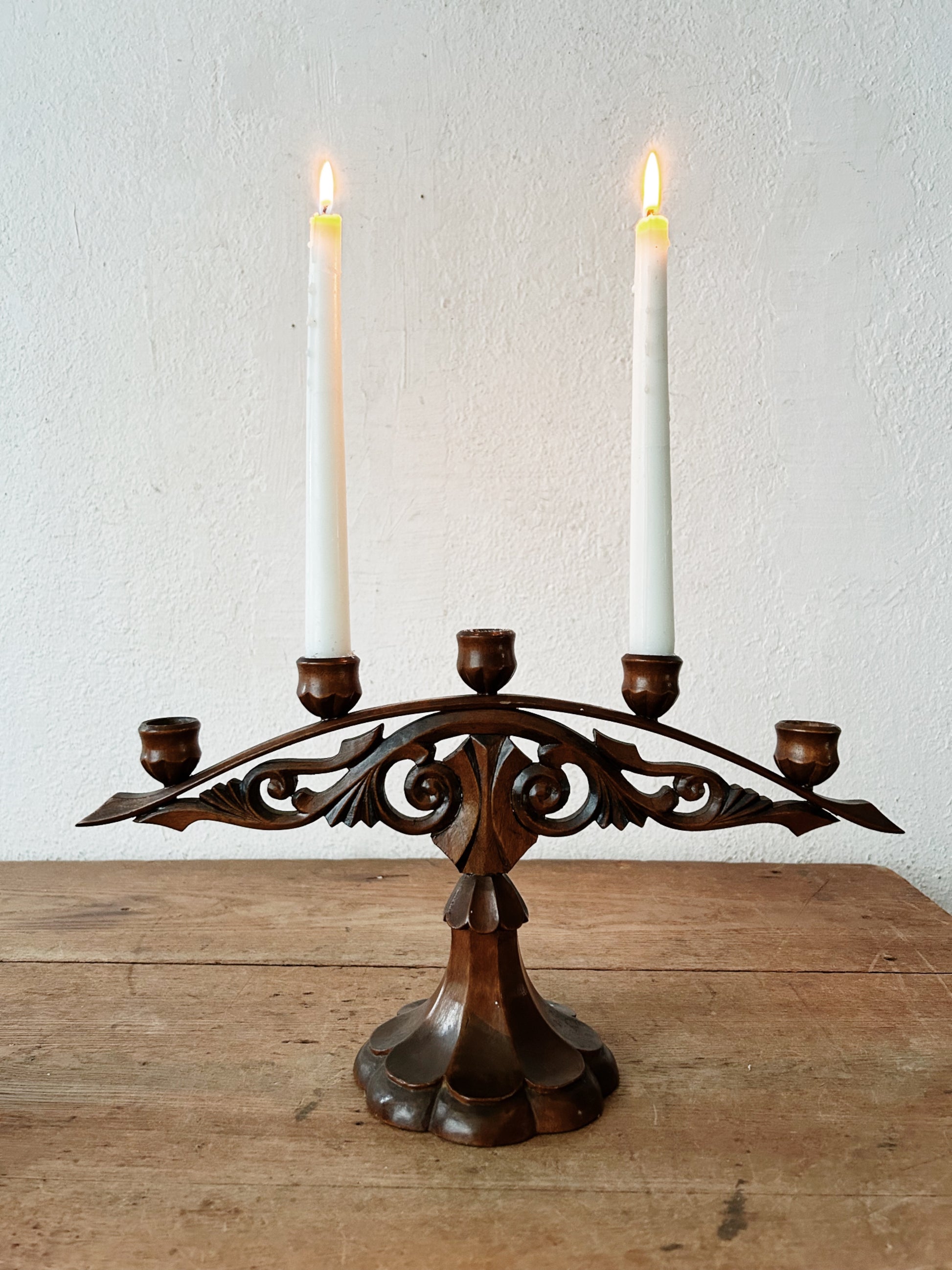 Vintage Carved Wood Candelabra