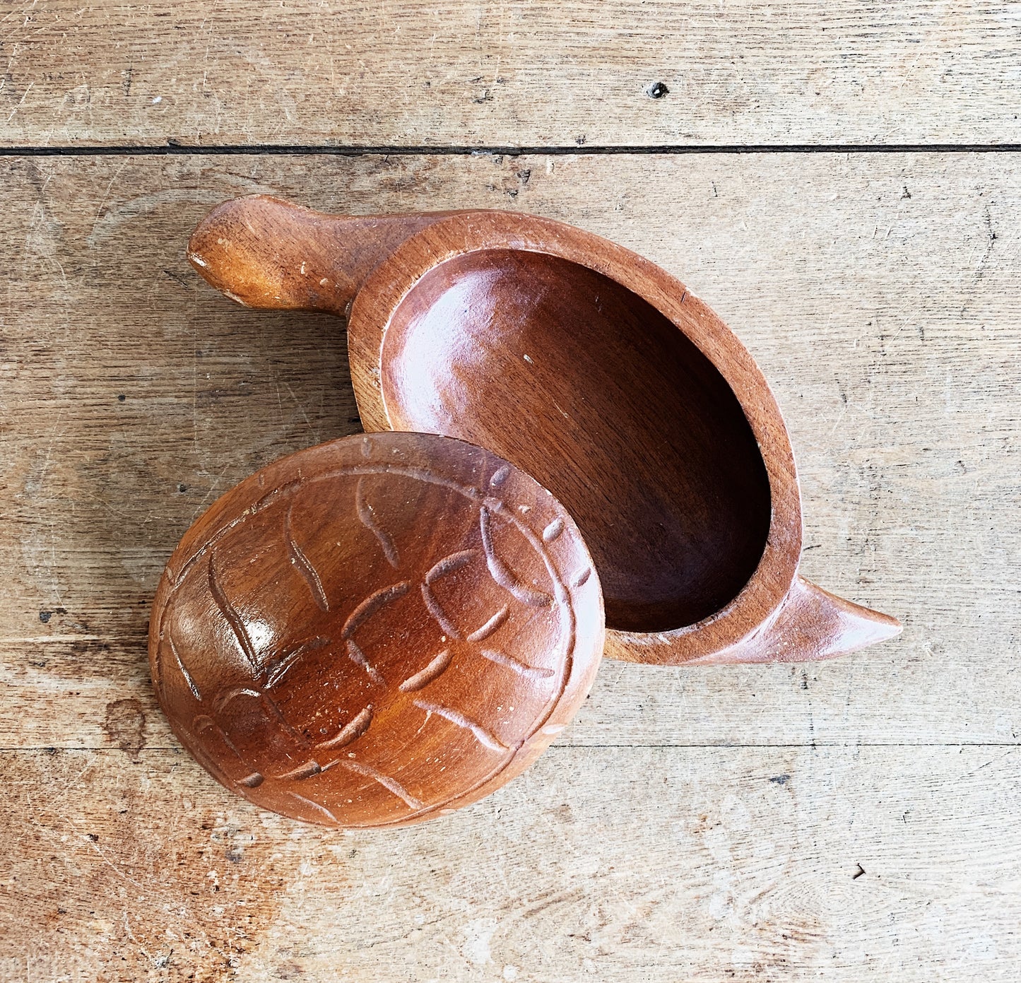 Vintage carved wood turtle stash box. What a cutie! Nice larger size at 12x6.5”