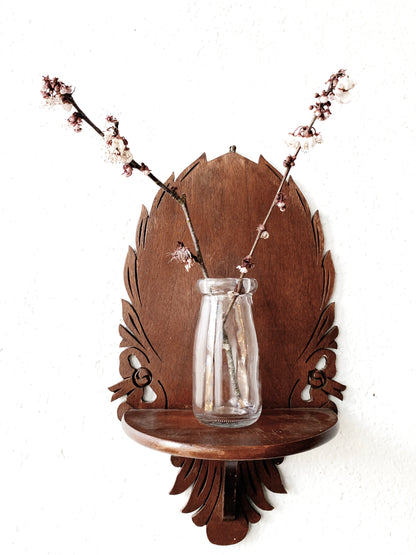 Sweet vintage carved wood shelf. Perfect for holding a small bloom or succulent.