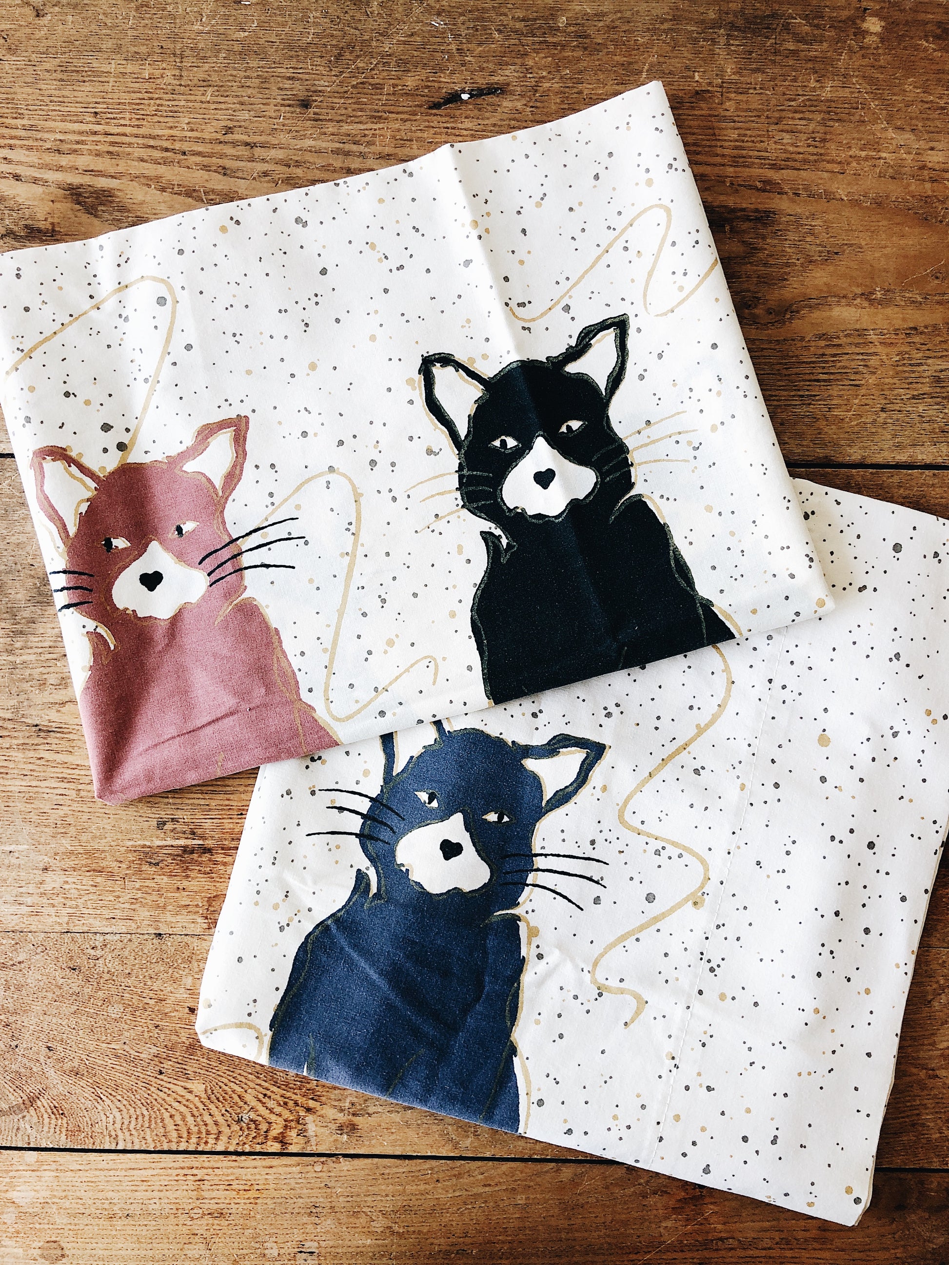 Fab vintage JC Penney pillowcases. Cotton blend. Warm white with great colored graphics. Sized for regular to queen cases