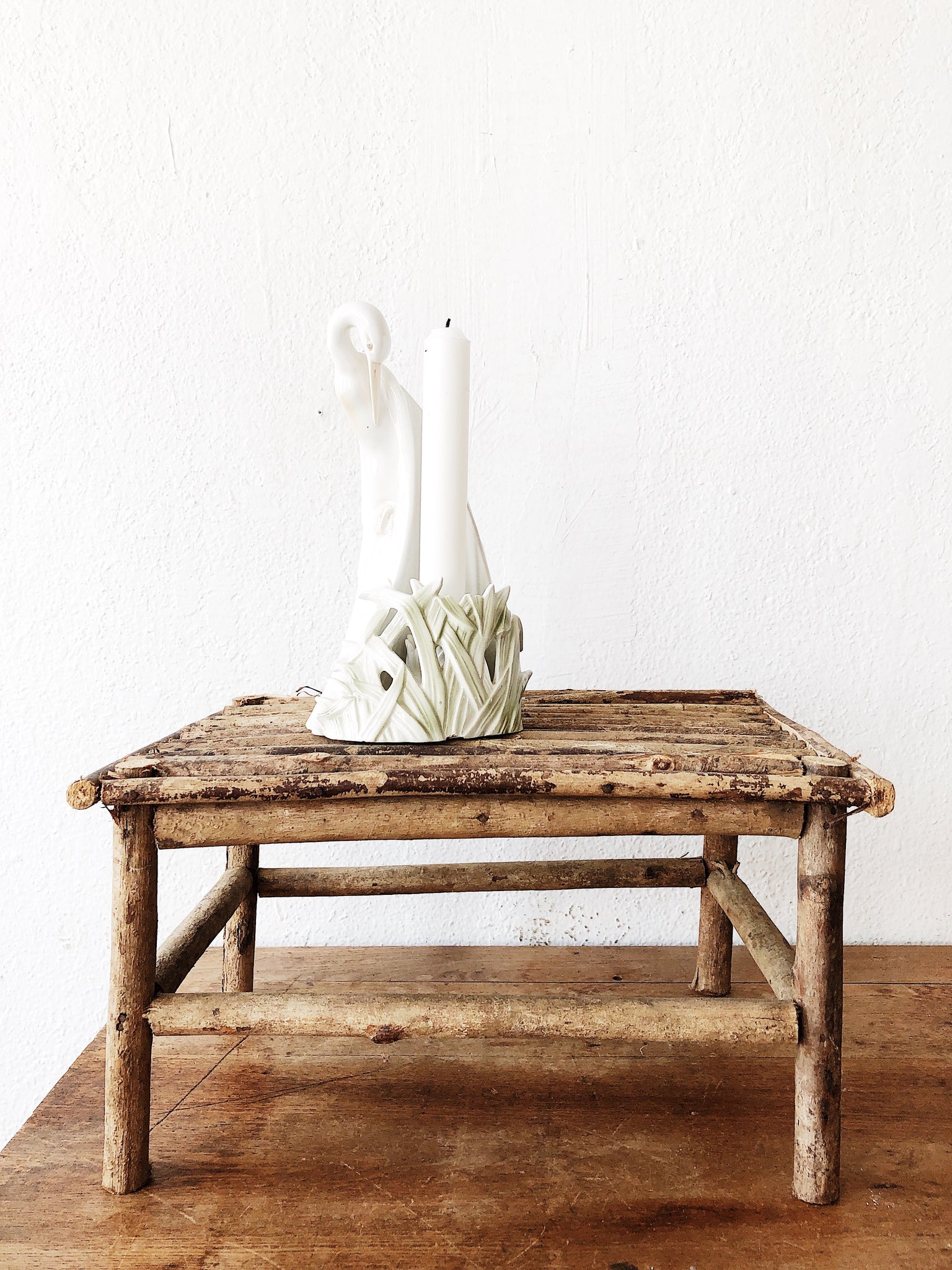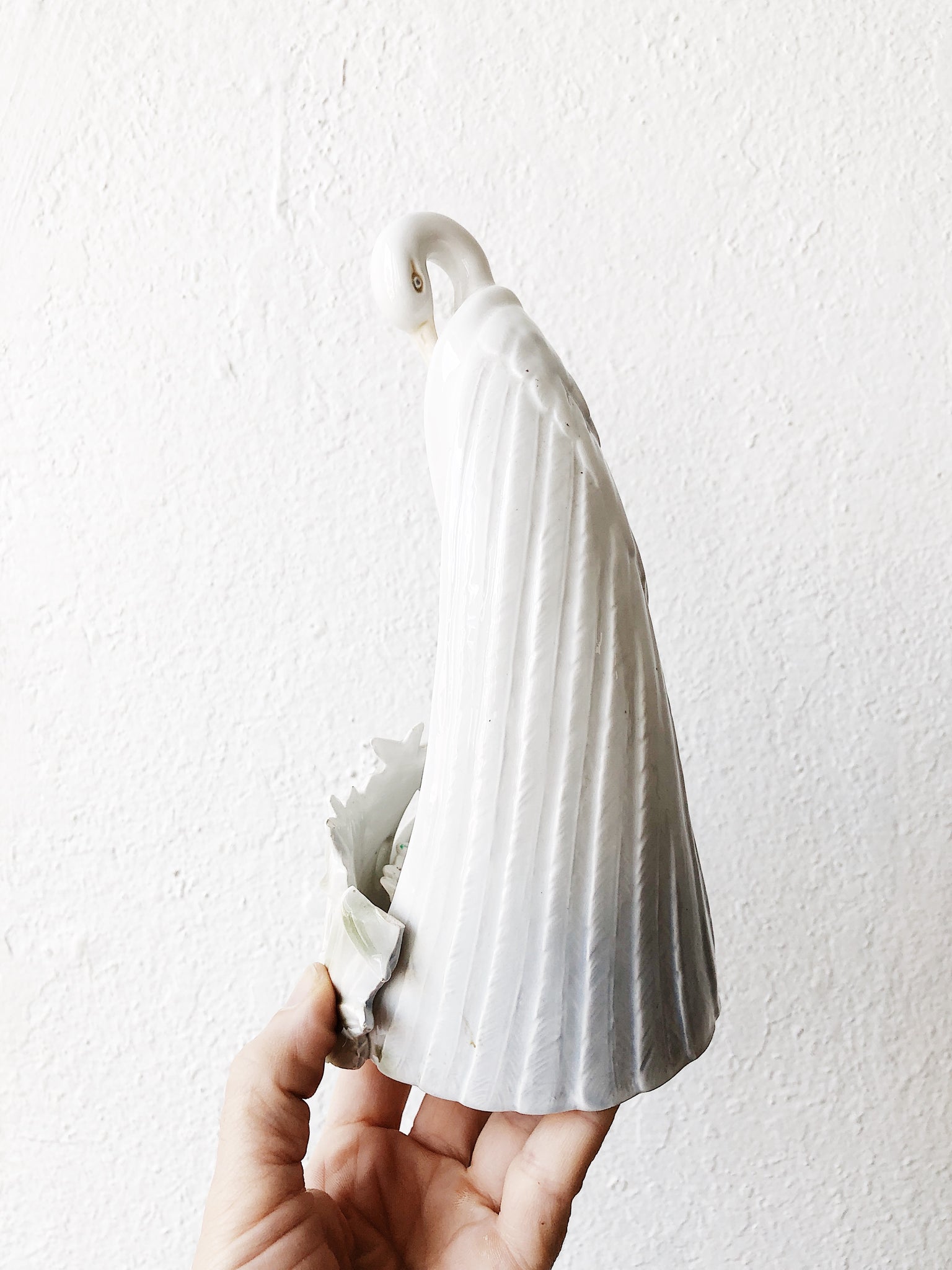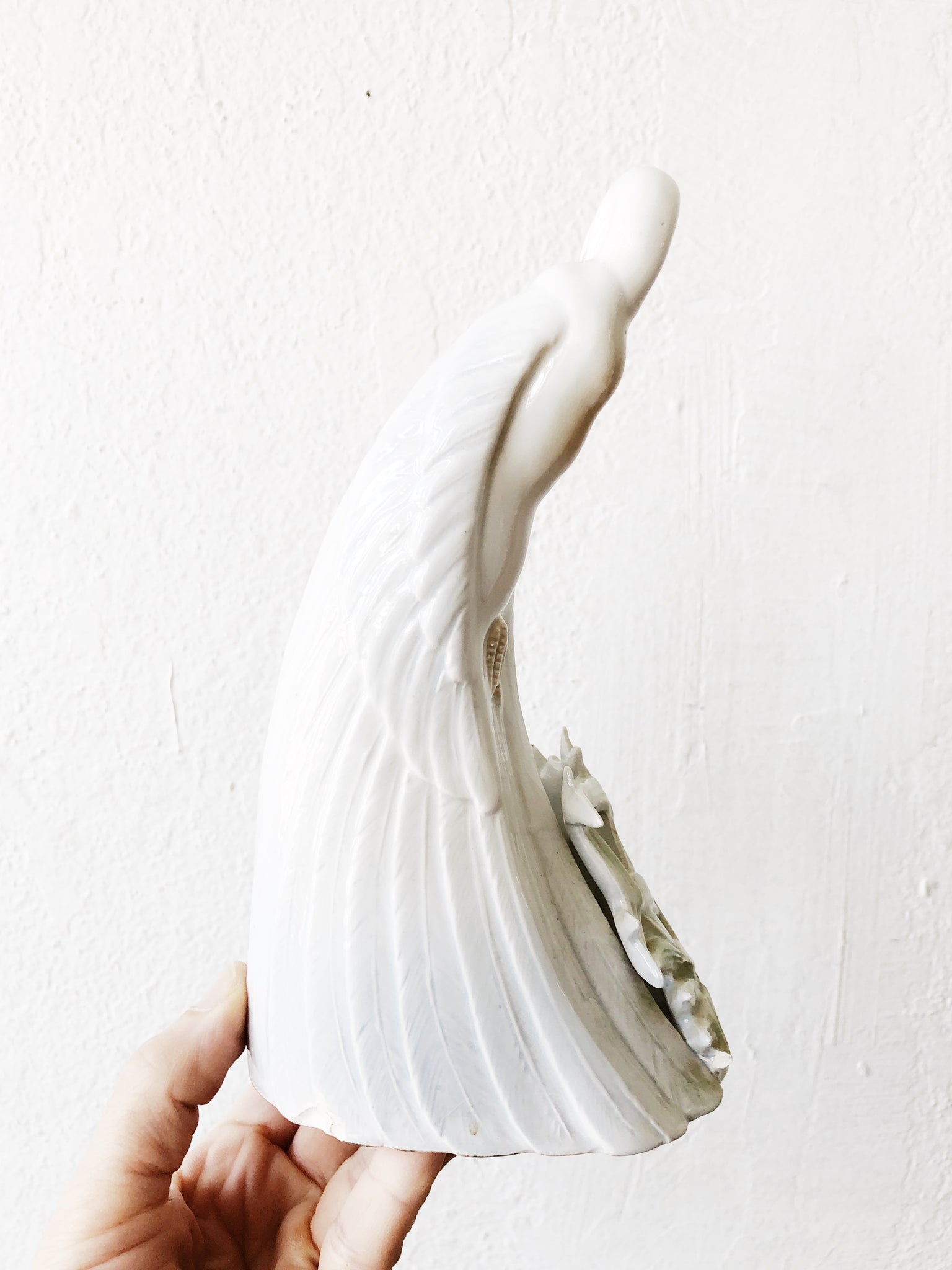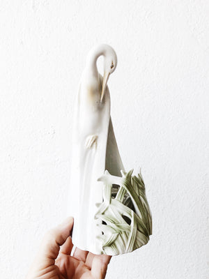 Love the Erté feel to this ceramic piece. Beautiful coloration. It has a holder for a taper candle but accommodates a small glass vessel (not included) for a cutting or bloom. On small chip as shown