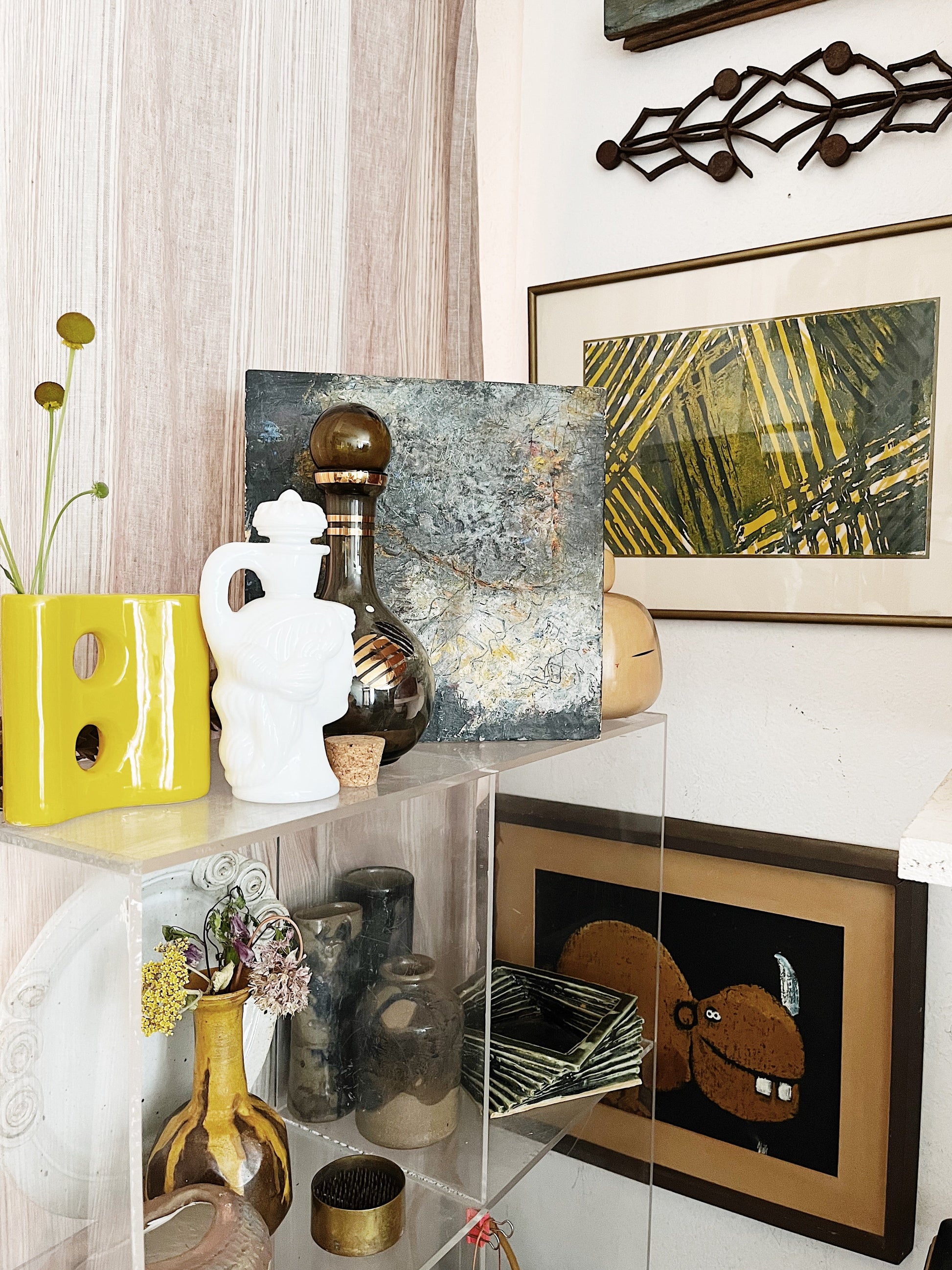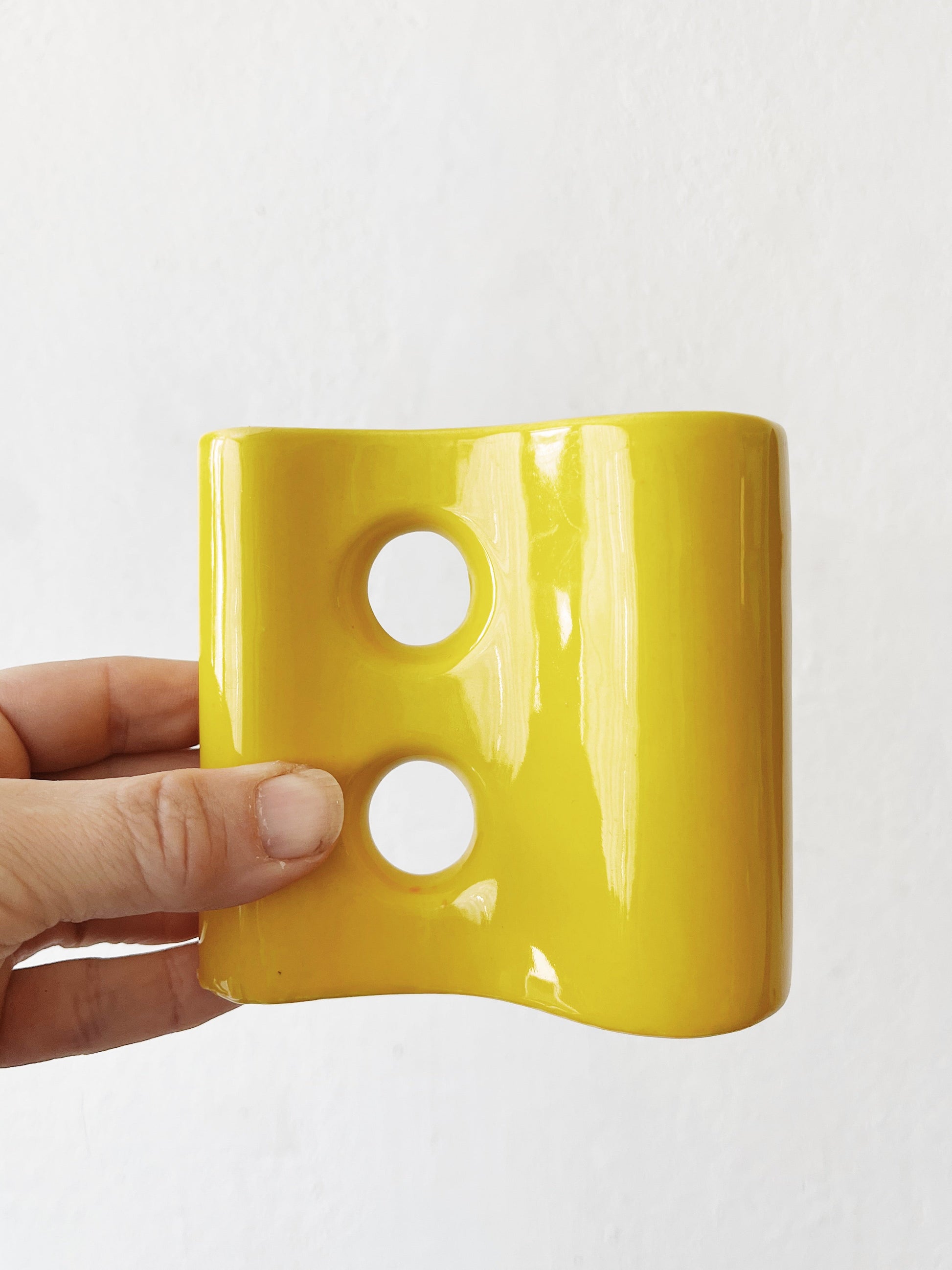 Super cheery vintage ceramic vase with dual openings. Pencil holder? Espresso cup? Egg yolk yellow!