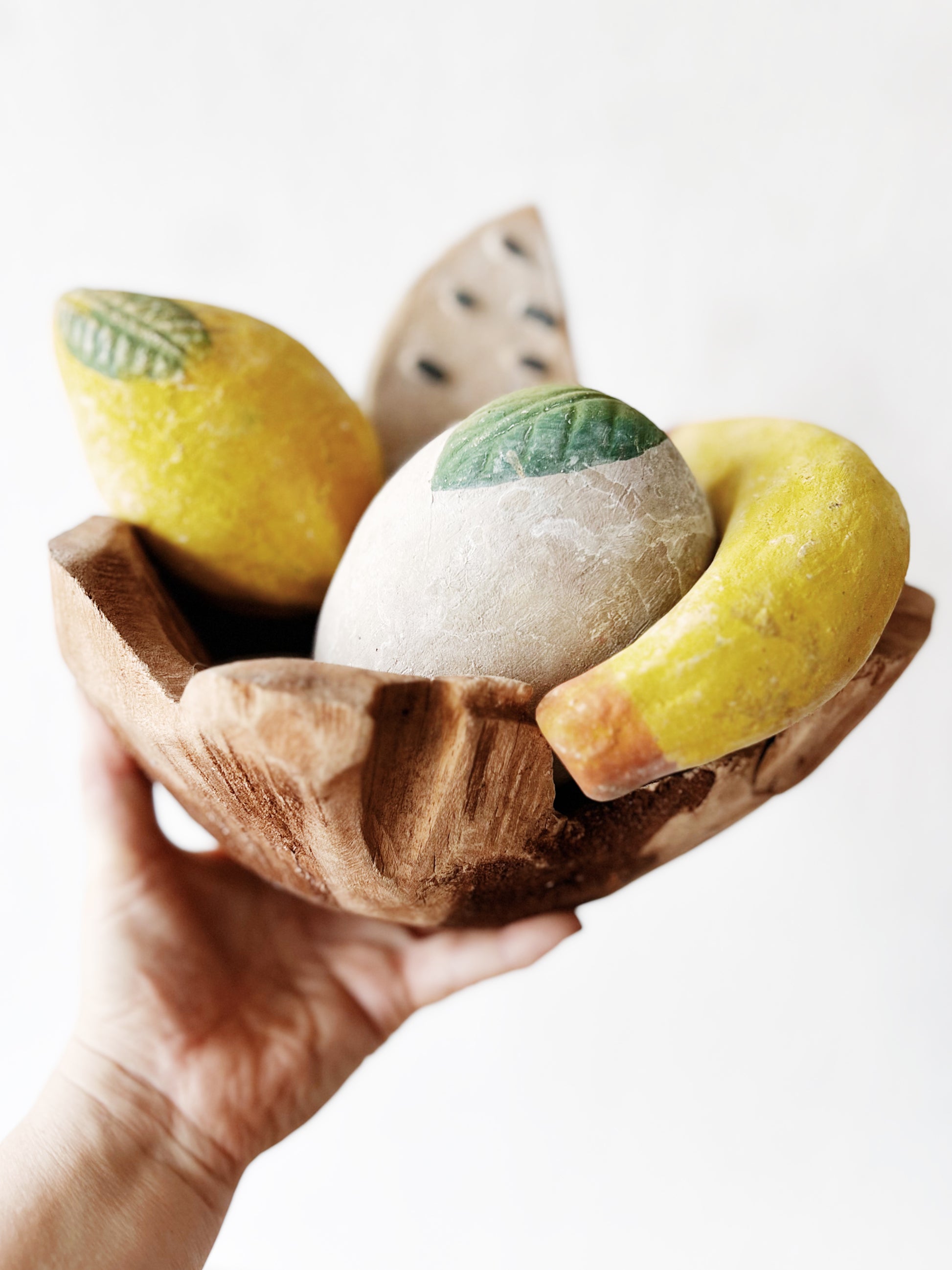 Great whimsical look to these big ceramic fruit. Sold individually. Bowl is listed separately