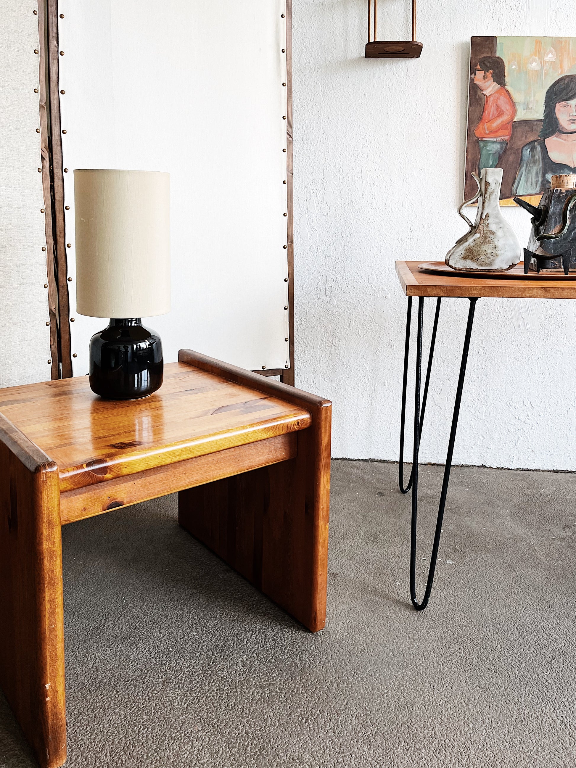 Great shape to this vintage 1980s ceramic lamp. It’s topped with a silk cylindrical shade. Lamp is in wonderful condition. The shade has a couple small inner cracks to the liner that only show a little when illuminated.