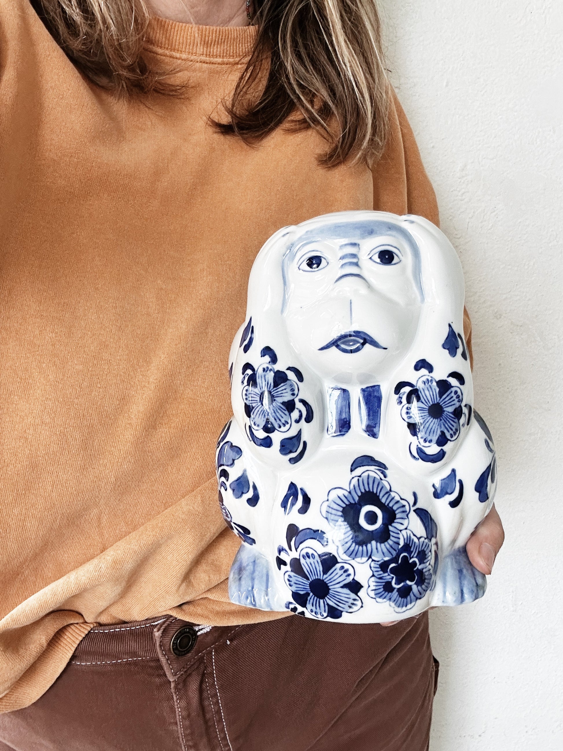 Blue China hear no evil vintage monkey statue. In good condition with no chips or cracks