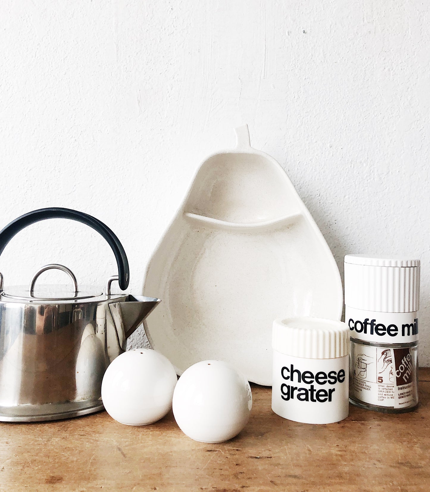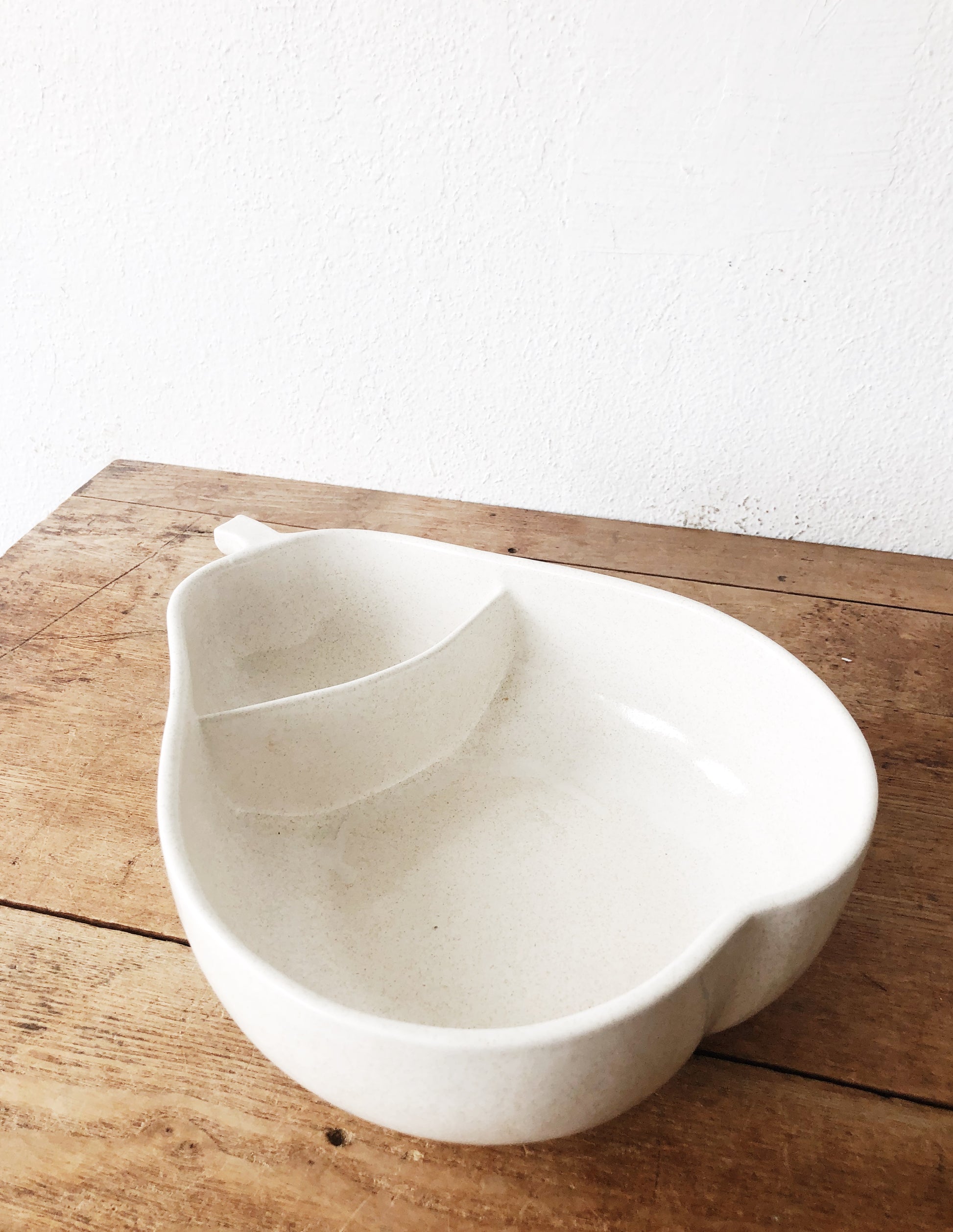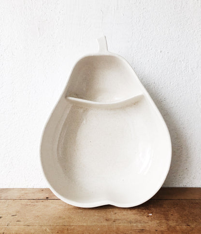 Vintage Pear serving bowl in warm white flecked ceramic. Good sized!