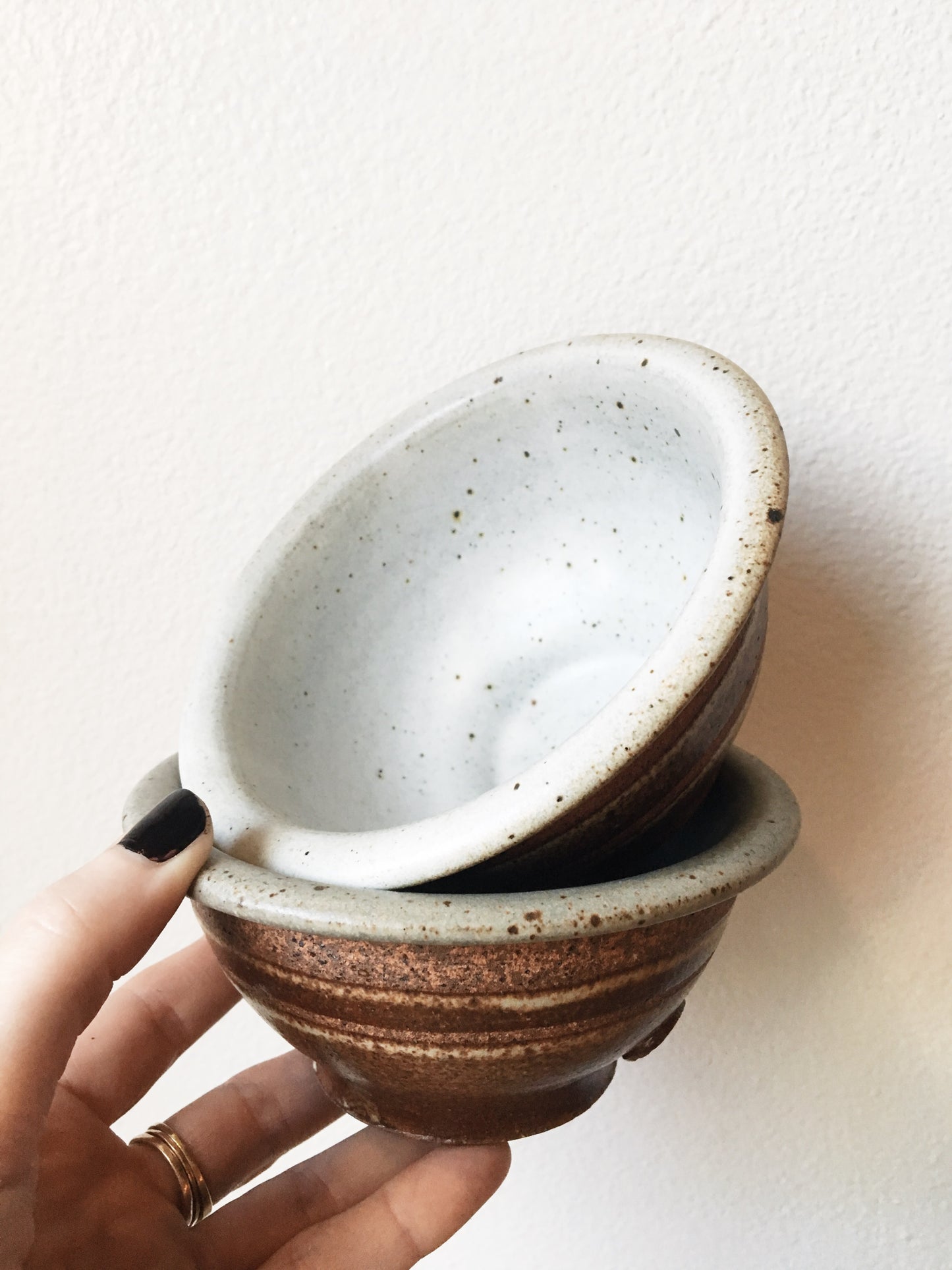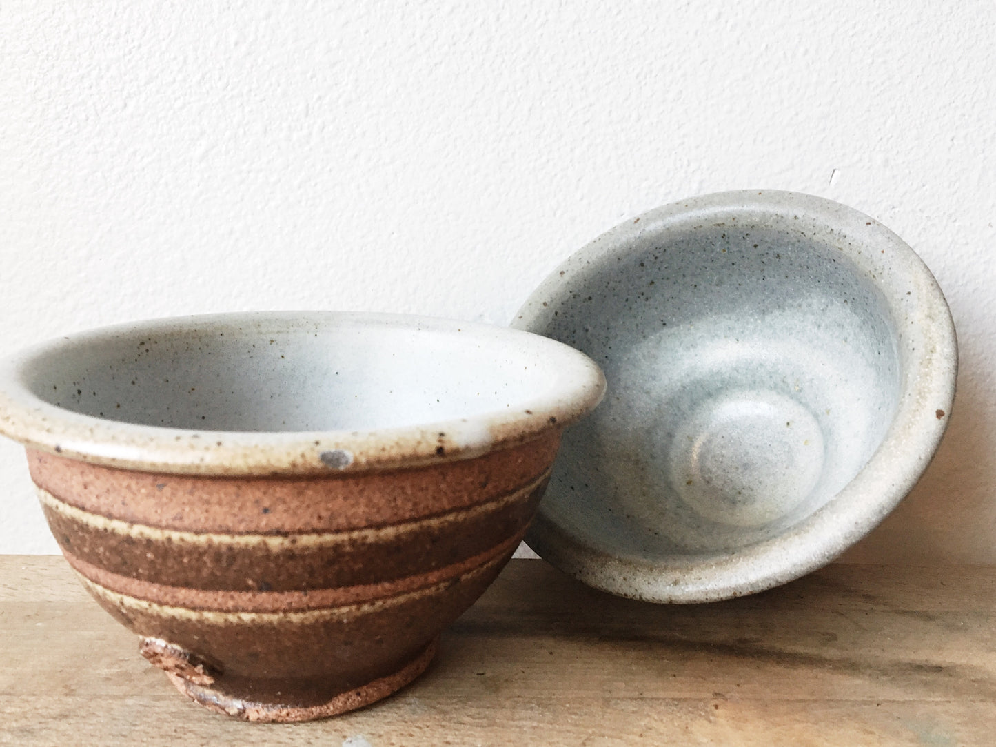 Vintage ceramic plates and bowls that work wonderfully together. Mismatched but matching bowls and plates, if that makes sense :)